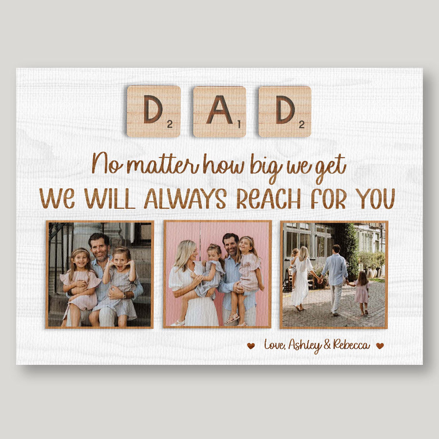Treat the new dad in your life to canvas for father’s day | fathers day gift personalized that commemorates the baby's arrival and his first Father's Day. Our personalized photo canvas is sure to bring a smile seeing little ones grow up before their eyes. Customize it FREE now - he will love displaying this treasured memory for many years to come.