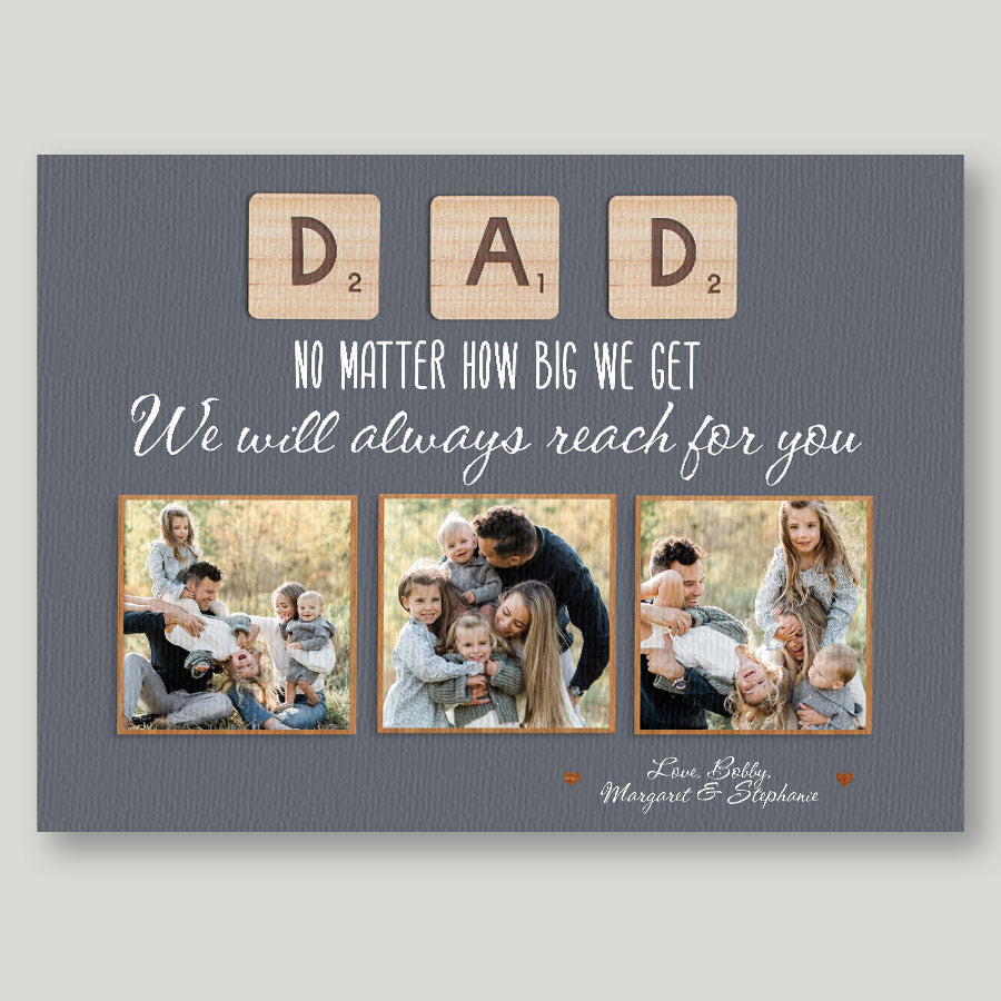 Treat the new dad in your life to canvas prints for father’s day | personalized father’s day gift that commemorates the baby's arrival and his first Father's Day. Our personalized photo canvas is sure to bring a smile seeing little ones grow up before their eyes. Customize it FREE now - he will love displaying this treasured memory for many years to come.