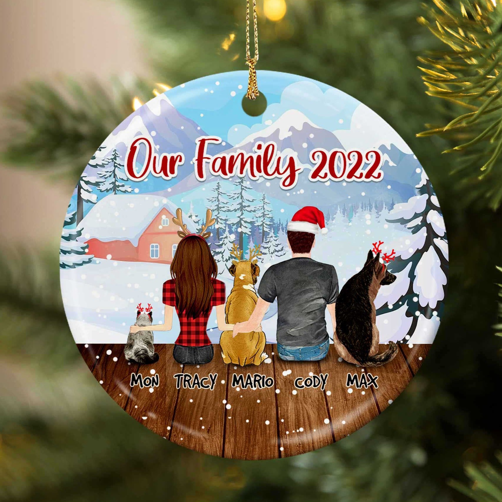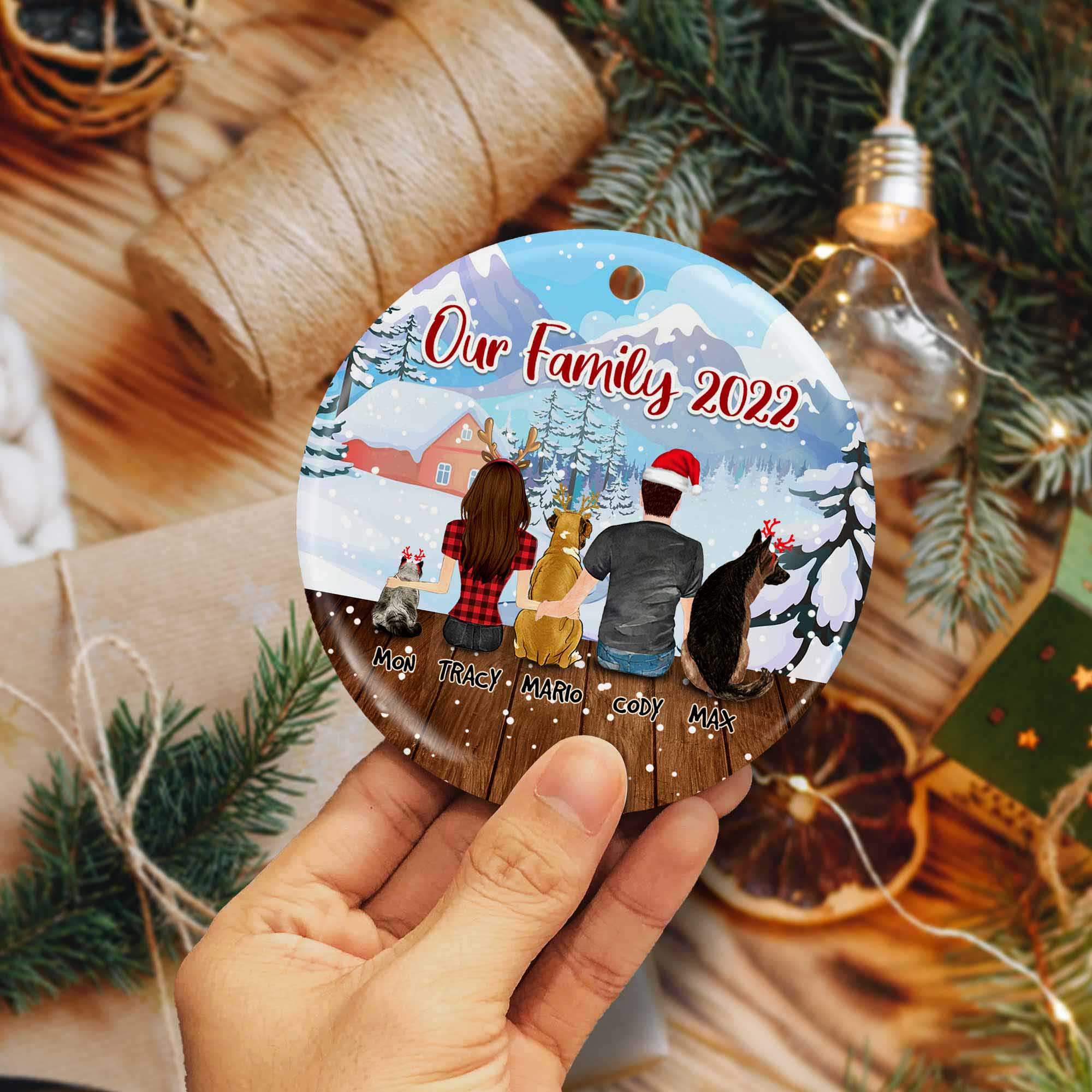 Personalized Valentines 2023, Couple with 2 Dogs Ornament, Our First Christmas Ornaments, Personalized Christmas Ornaments with Pets