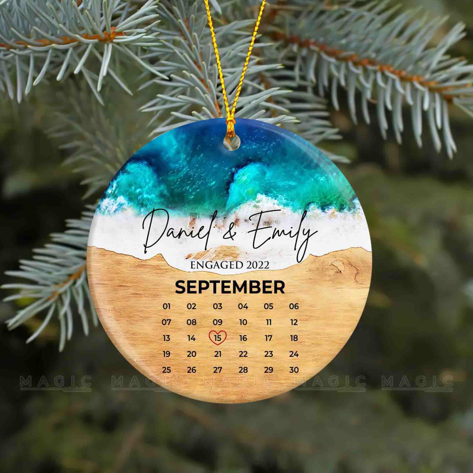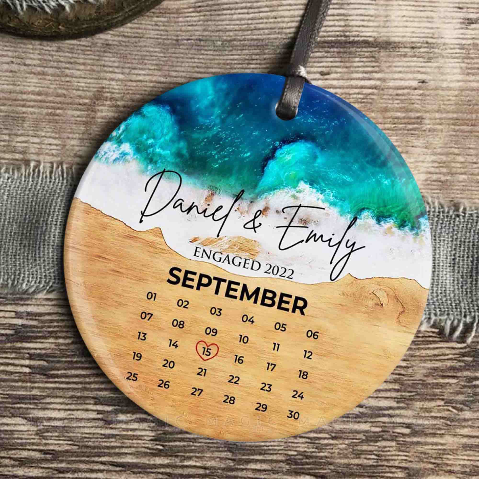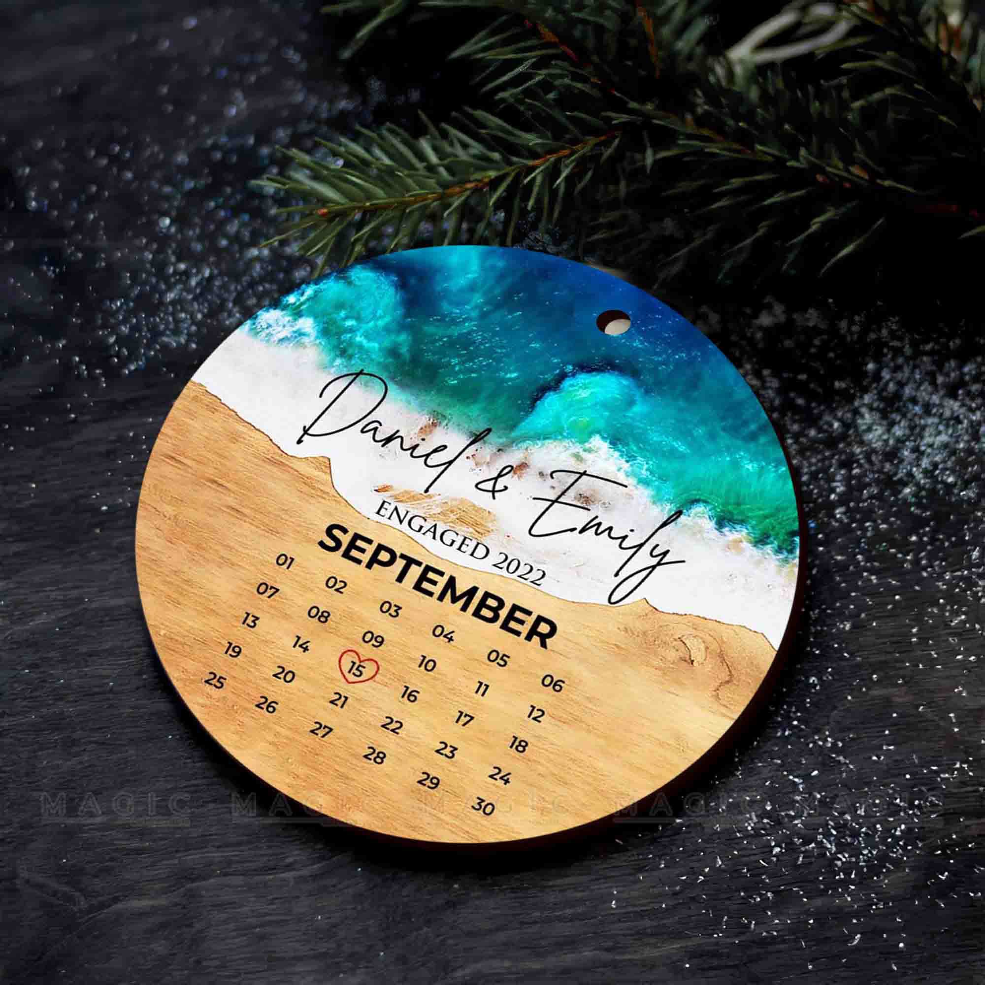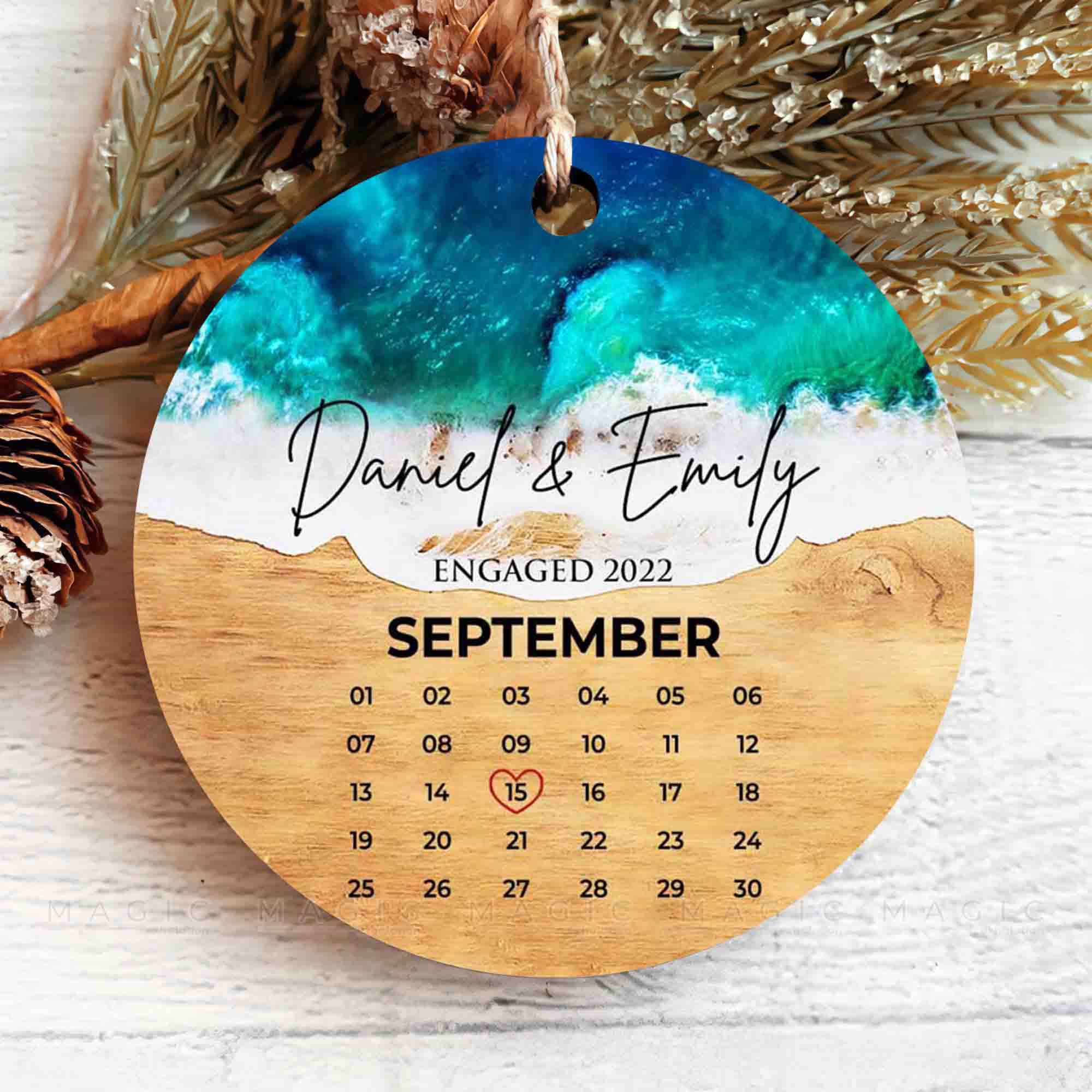 Beach Engagement Ornament, Personalized Engagement Ornament Christmas 2023, Married First Christmas Ornament for Couple, Engagement Gift