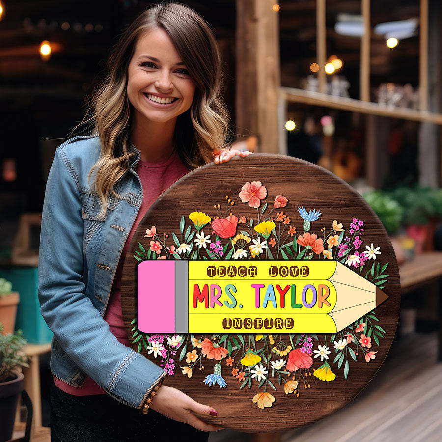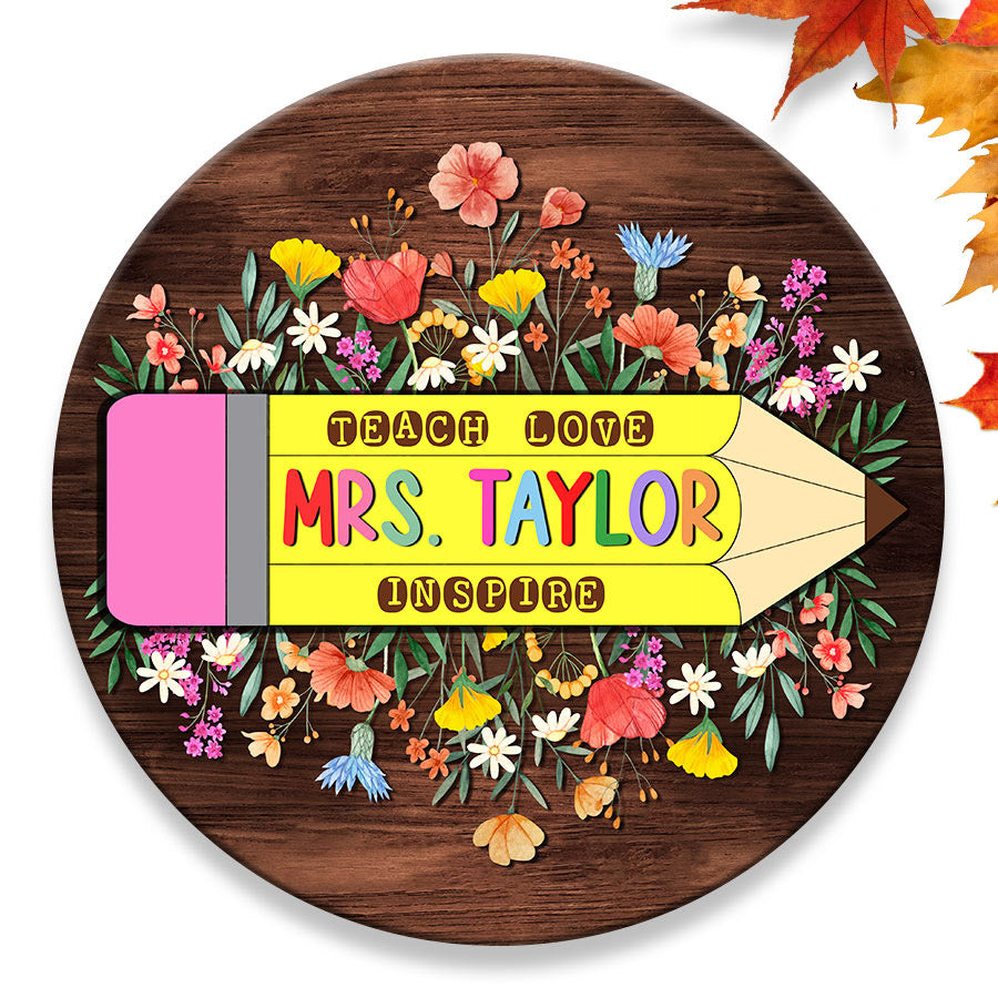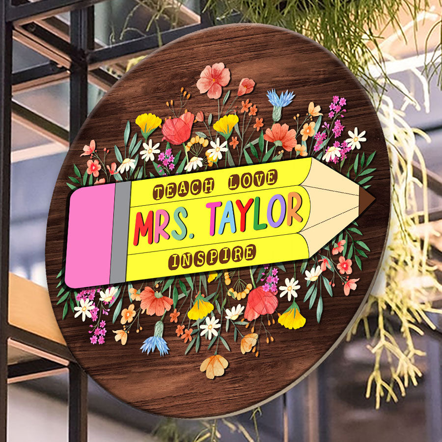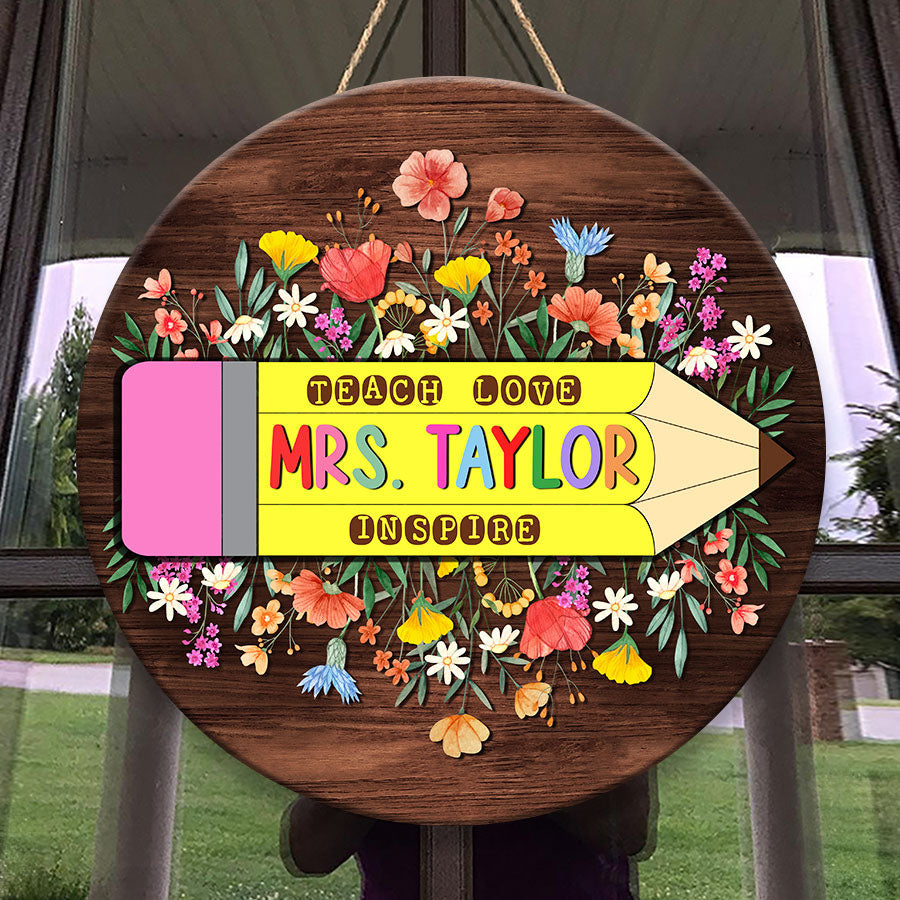 Round Teacher Door Hanger | Personalized Teacher Gifts | Teacher Door Hanger Signs | Teach Love Inspire