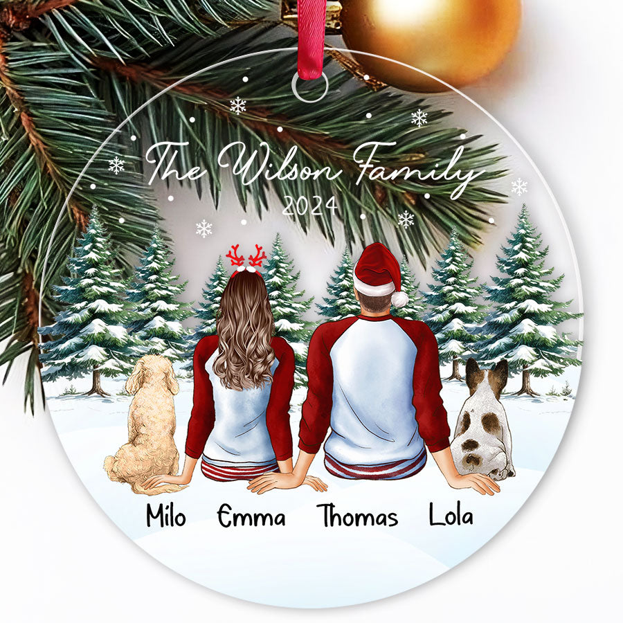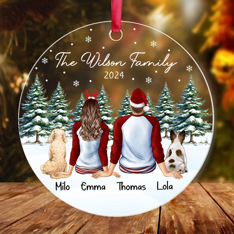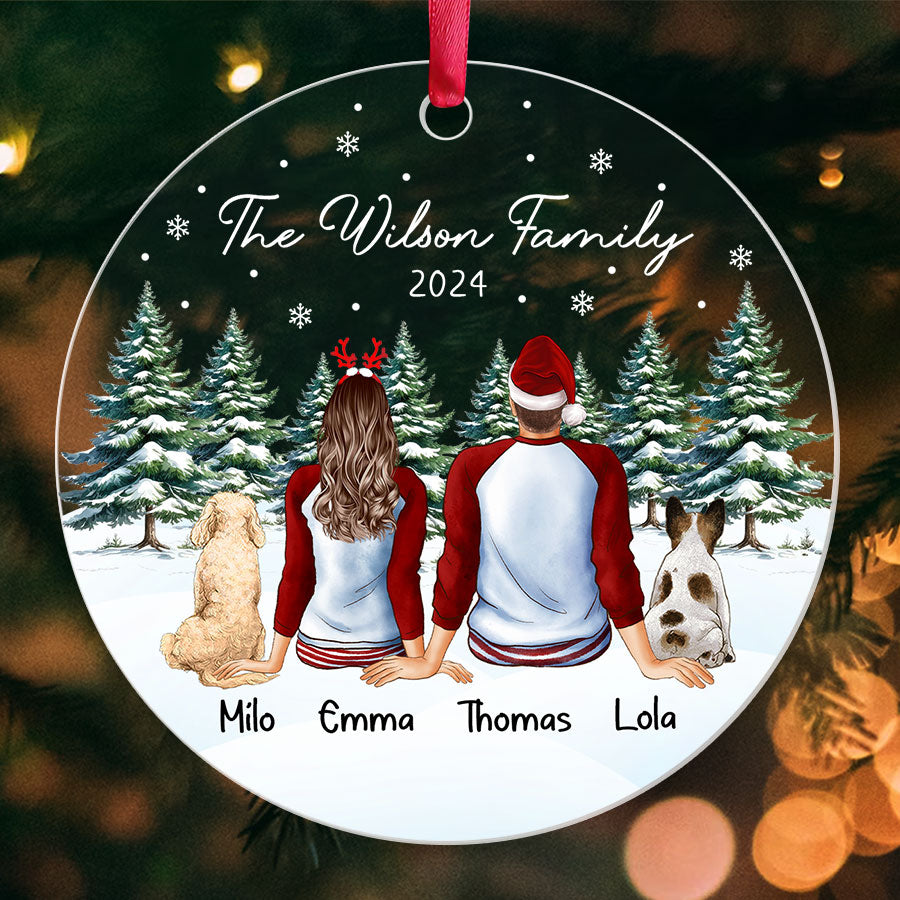 Couple and 2 Dogs Christmas Ornament | Personalized Couple Ornament With Dog