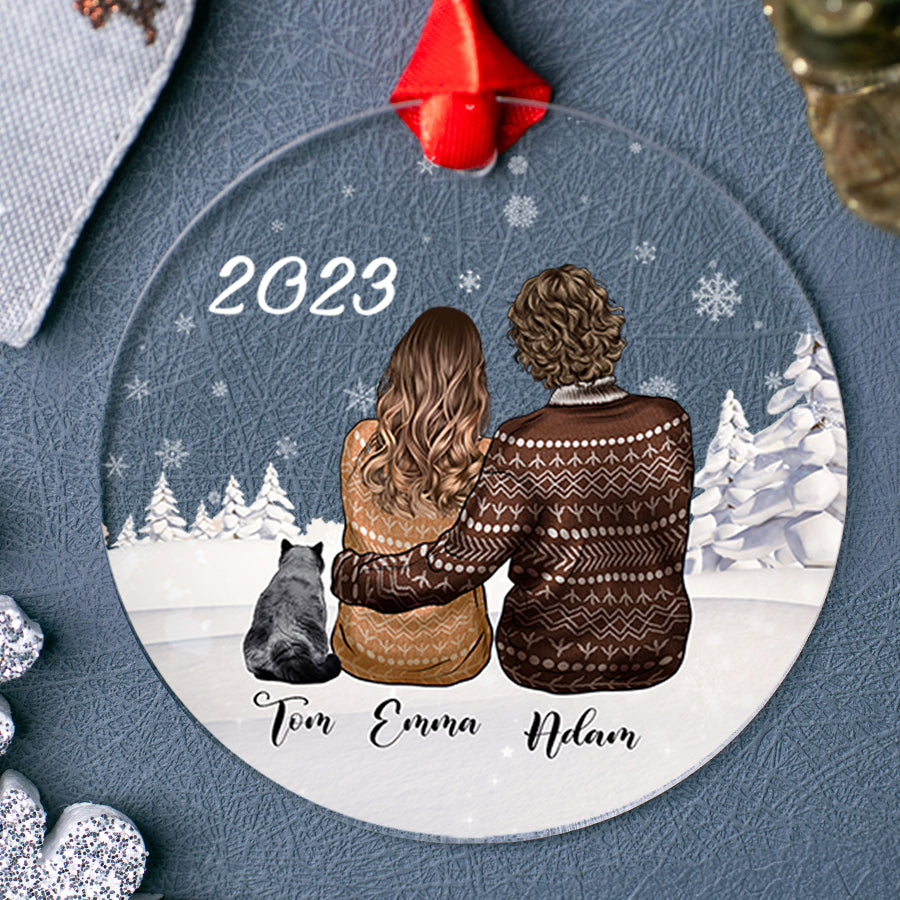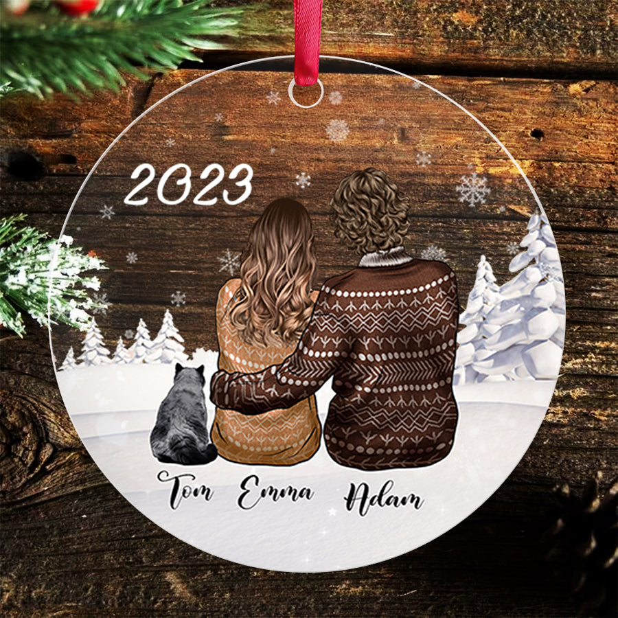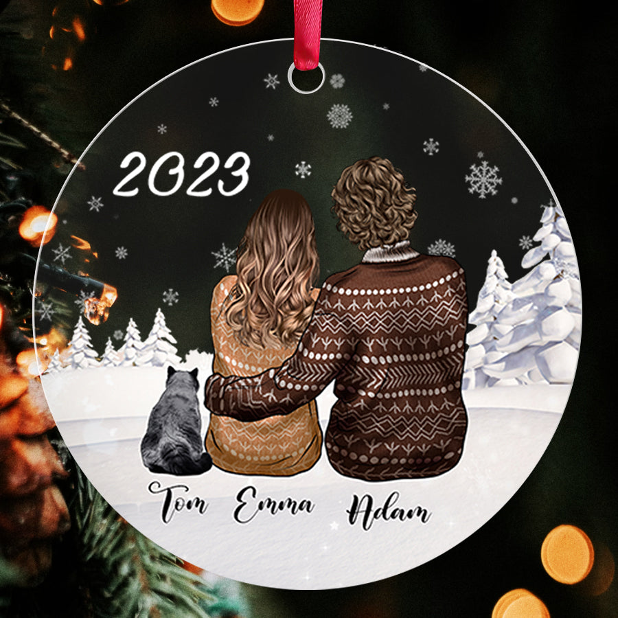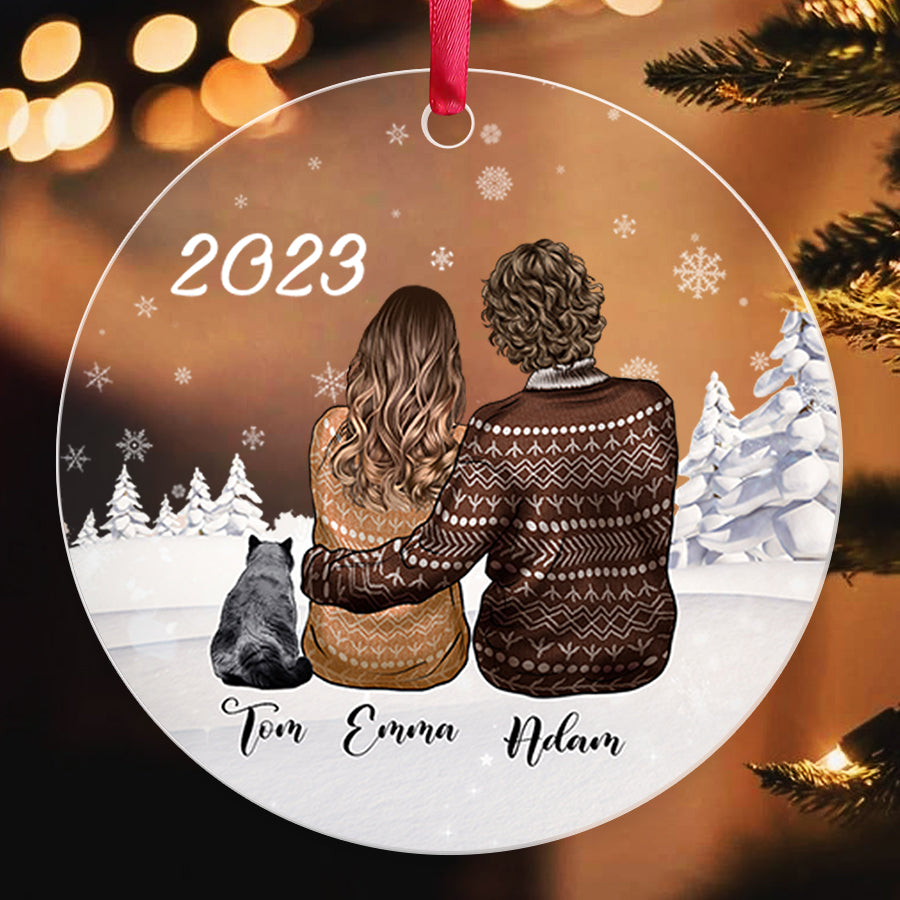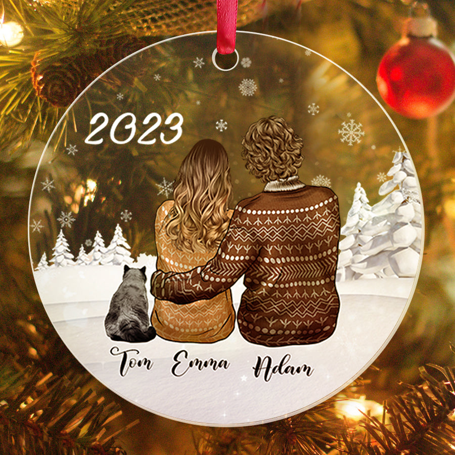 This couple with cat ornament | personalized christmas ornaments for couples with pet is a subtle yet profound way to keep the essence of your bond on top of your mind. Each time you catch a glimpse of this ornament proudly displayed in your home, you'll be reminded of the warmth, trust, and companionship that makes your relationship special. It's a poignant symbol of the unspoken promises you've made to be there for each other through all of life's ups and downs. This gift is the perfect personalized Christmas ornaments for couples for the ones you love. You can choose from a wide range of Personalized Christmas Ornaments, each of which can be customized with the name or image of your favorite people.