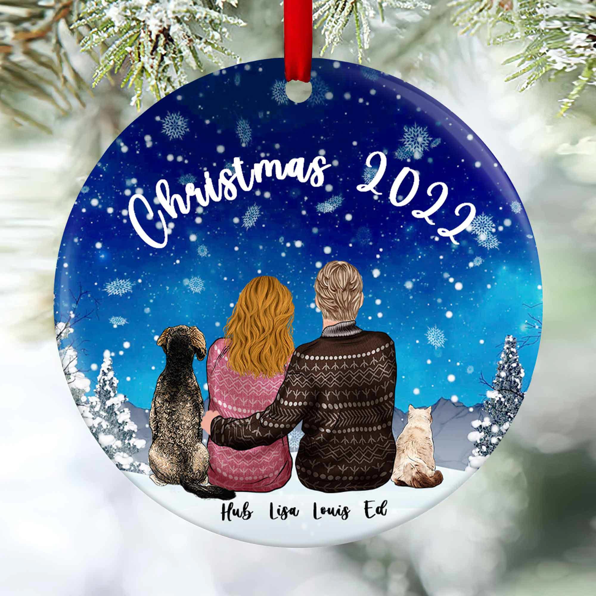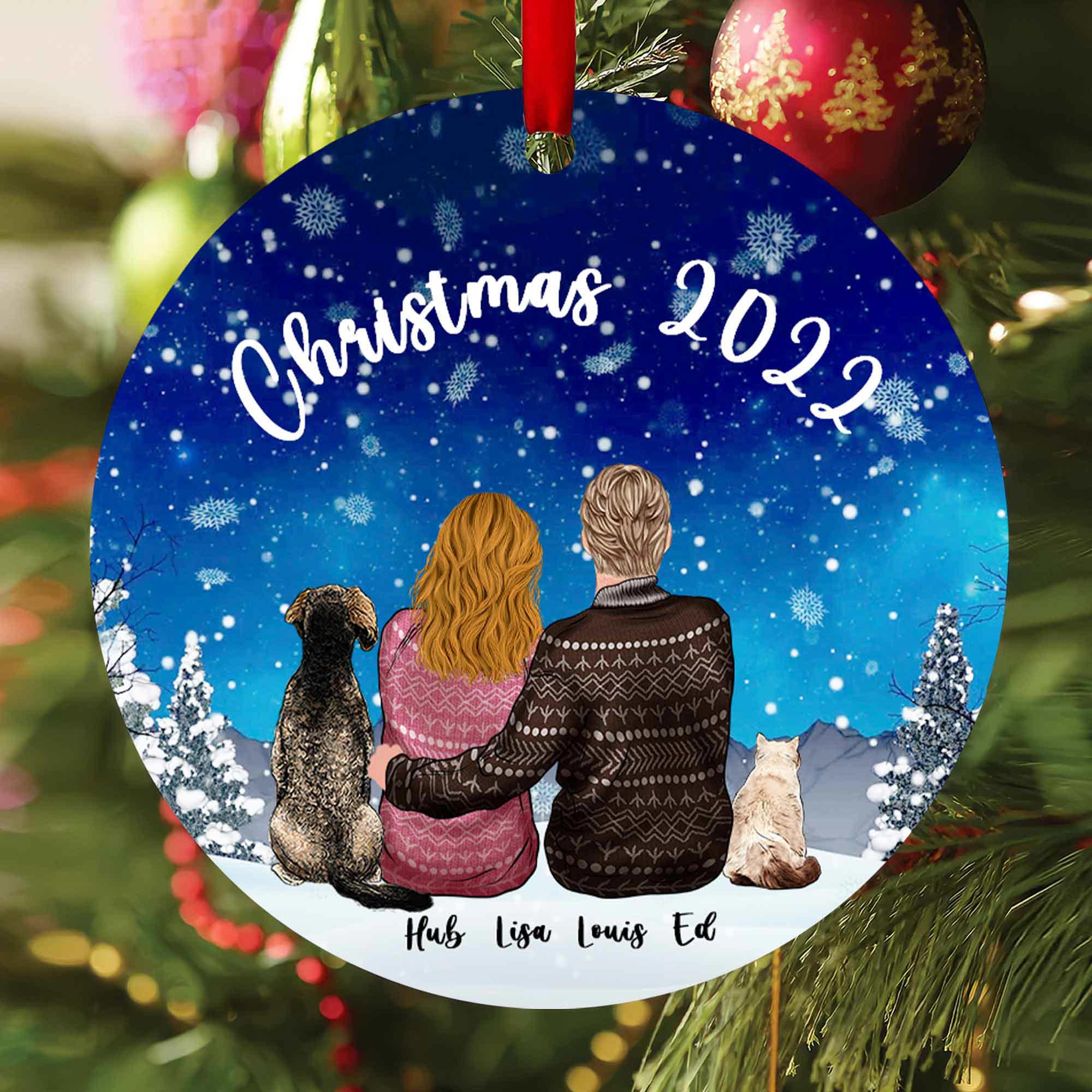 The couple with dog christmas ornament can be customized with the couple's name and wedding date, or even with a picture of the bride and groom. It's a lovely way to commemorate the couple's first Christmas together.