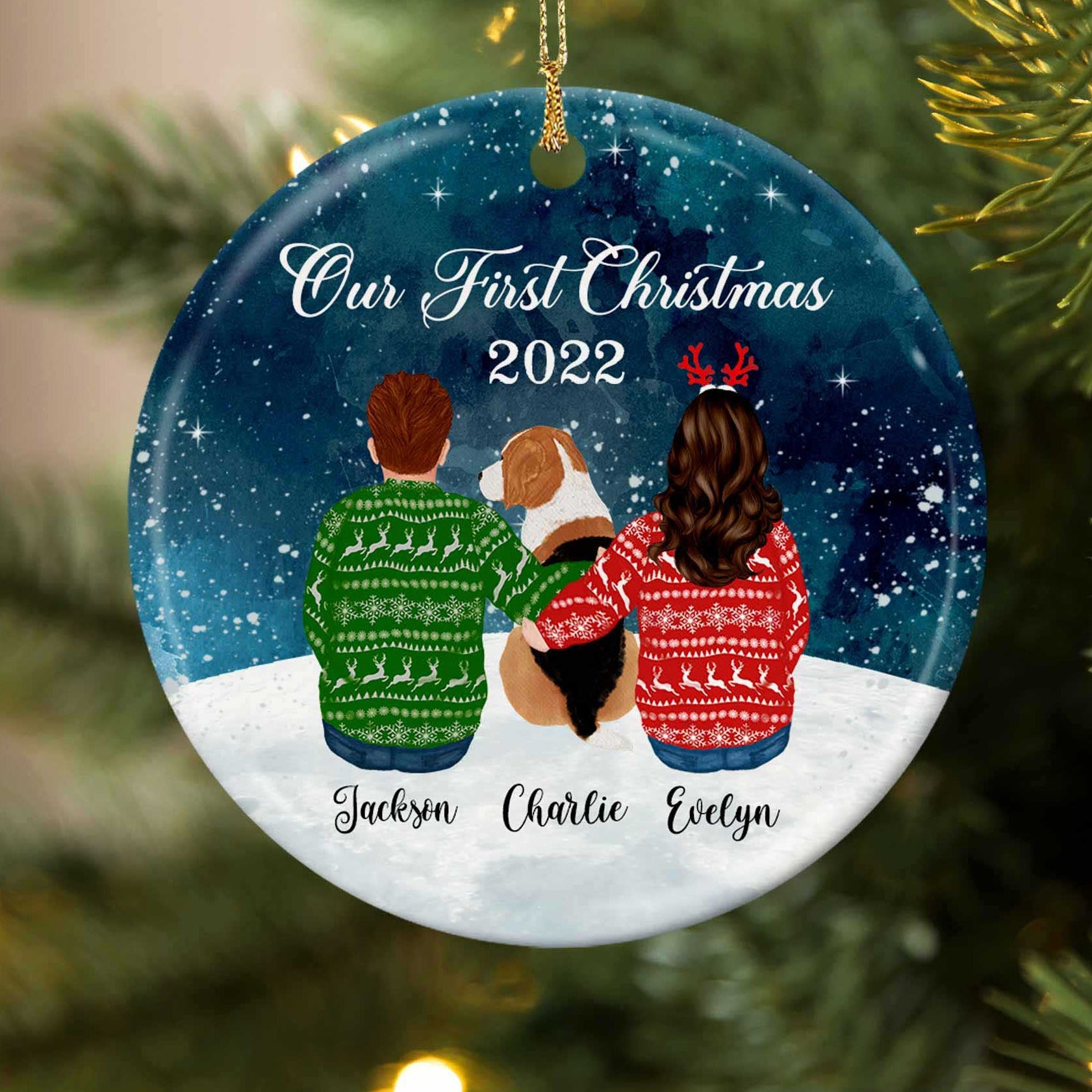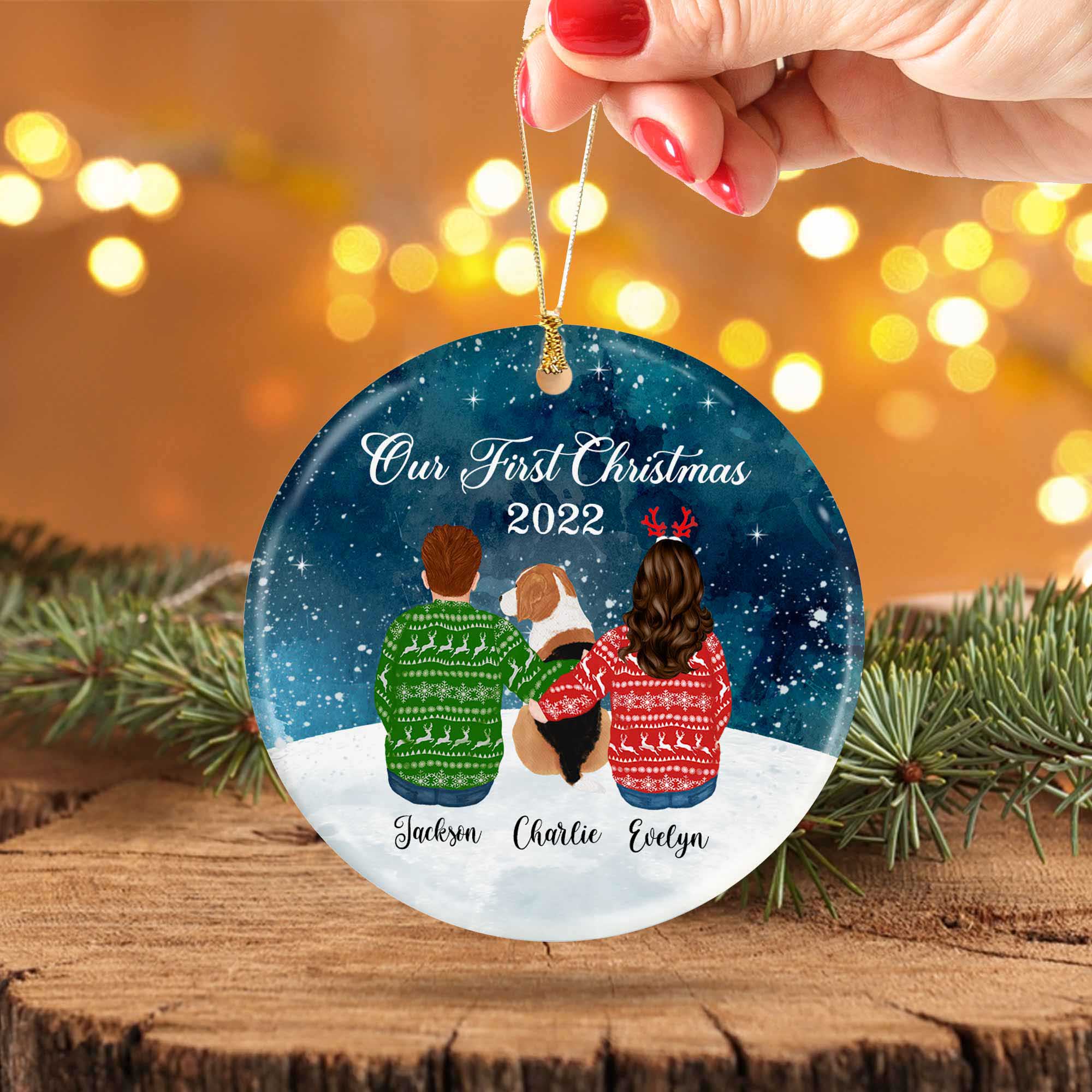 A Couple with Dog Ornament | from Magic Exhalation is the perfect Couple Ornaments gift for the ones you love. You can choose from a wide range of Personalized Christmas Ornaments, each of which can be customized with the name or image of your favorite people.