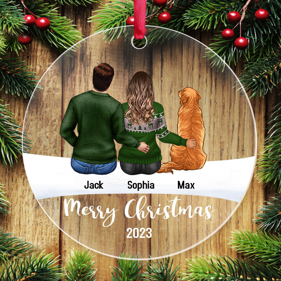 Couple With Dog Ornament | Ornaments Couple | Couple And Dog Ornament | Custom Acrylic Ornaments