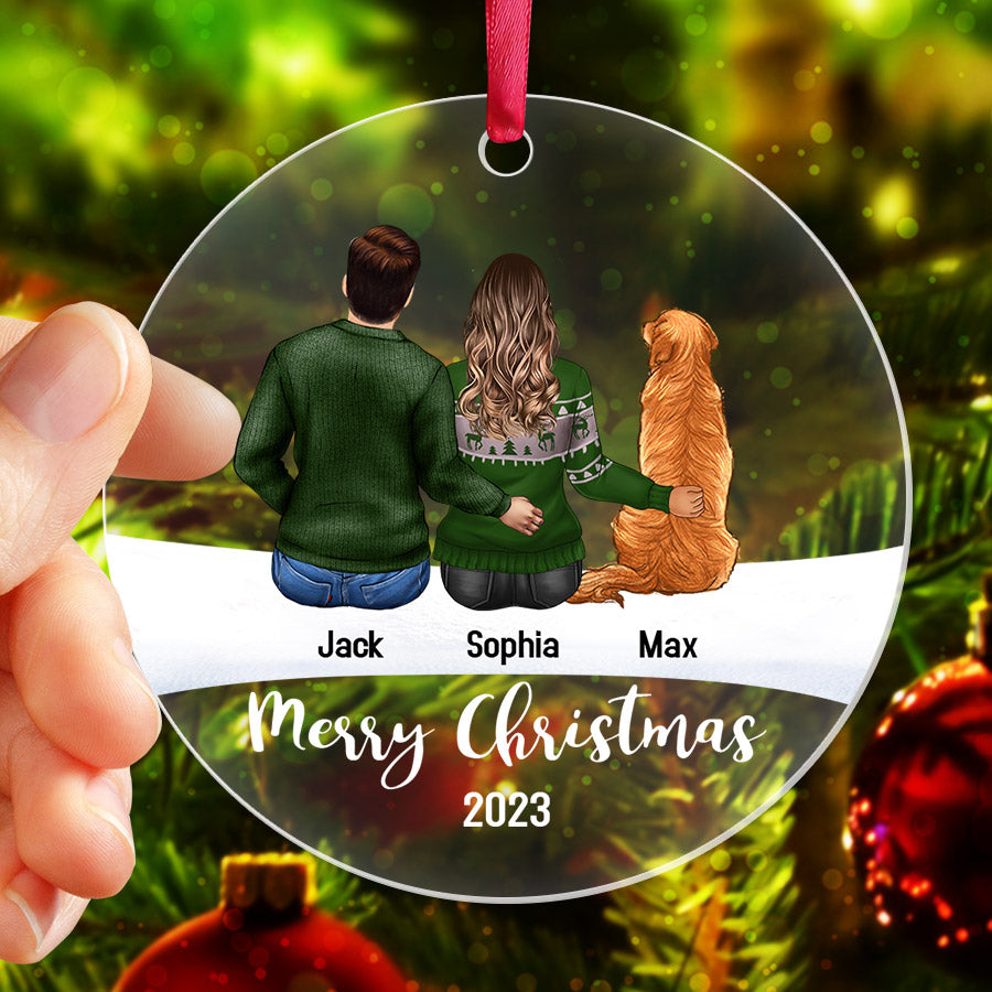 Couples Ornament | Personalized Couple With Dog Ornament | Ornaments With Names | Acrylic Ornament