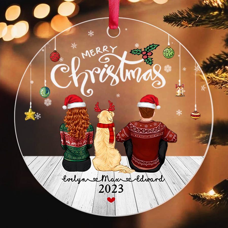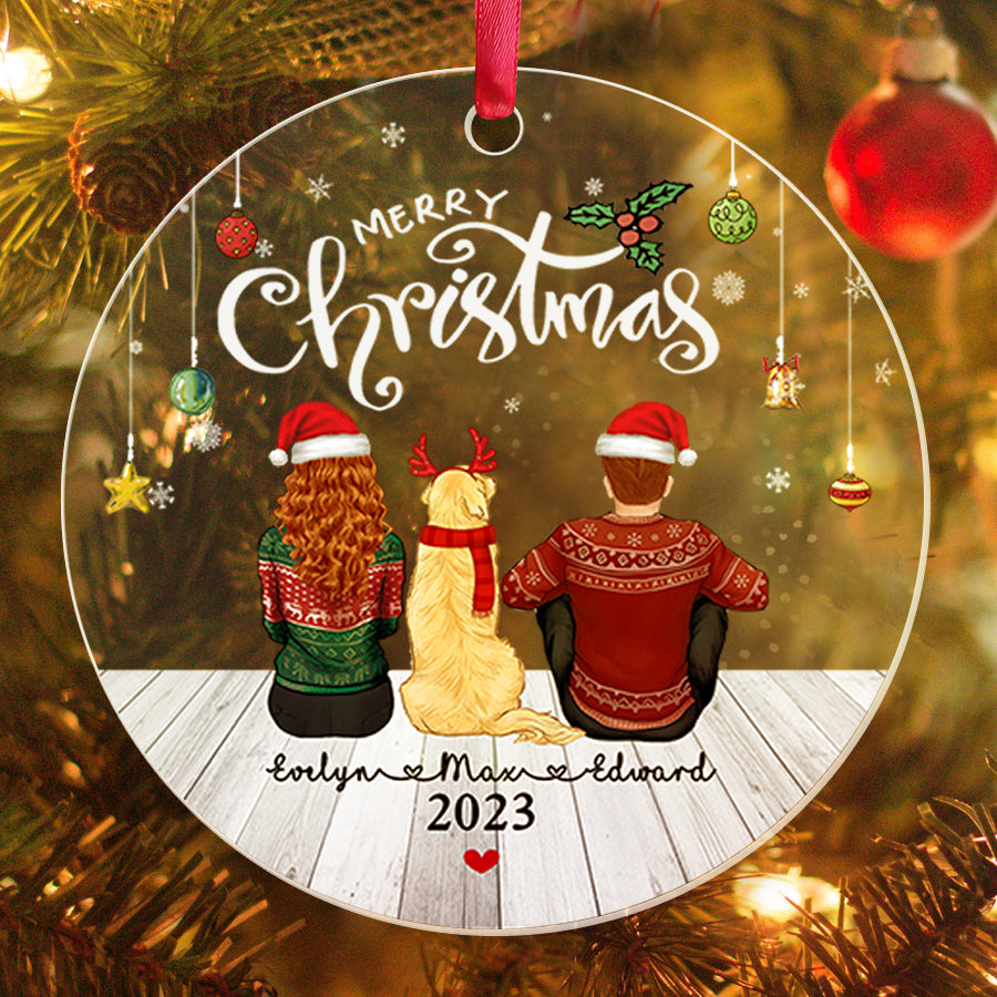This couple with dog ornament | personalized couple ornament is a subtle yet profound way to keep the essence of your bond on top of your mind. Each time you catch a glimpse of this ornament proudly displayed in your home, you'll be reminded of the warmth, trust, and companionship that makes your relationship special. It's a poignant symbol of the unspoken promises you've made to be there for each other through all of life's ups and downs. This gift is the perfect personalized Christmas ornaments for couples for the ones you love. You can choose from a wide range of Personalized Christmas Ornaments, each of which can be customized with the name or image of your favorite people.