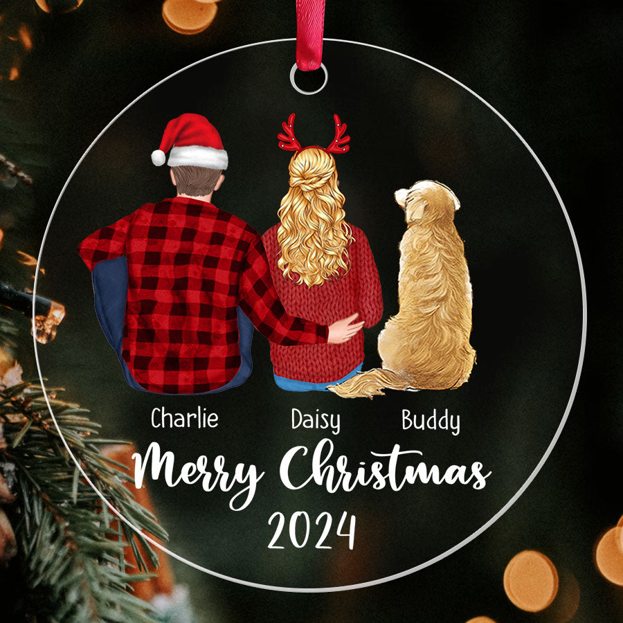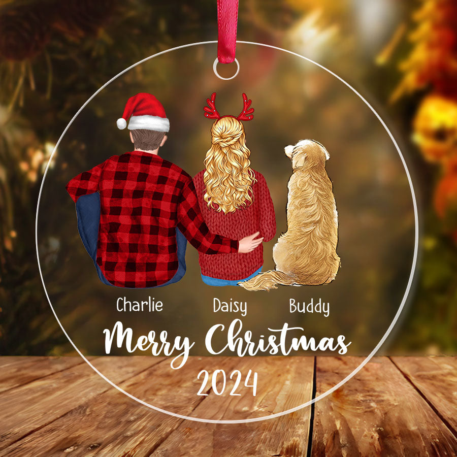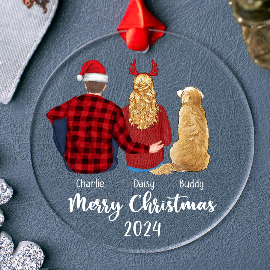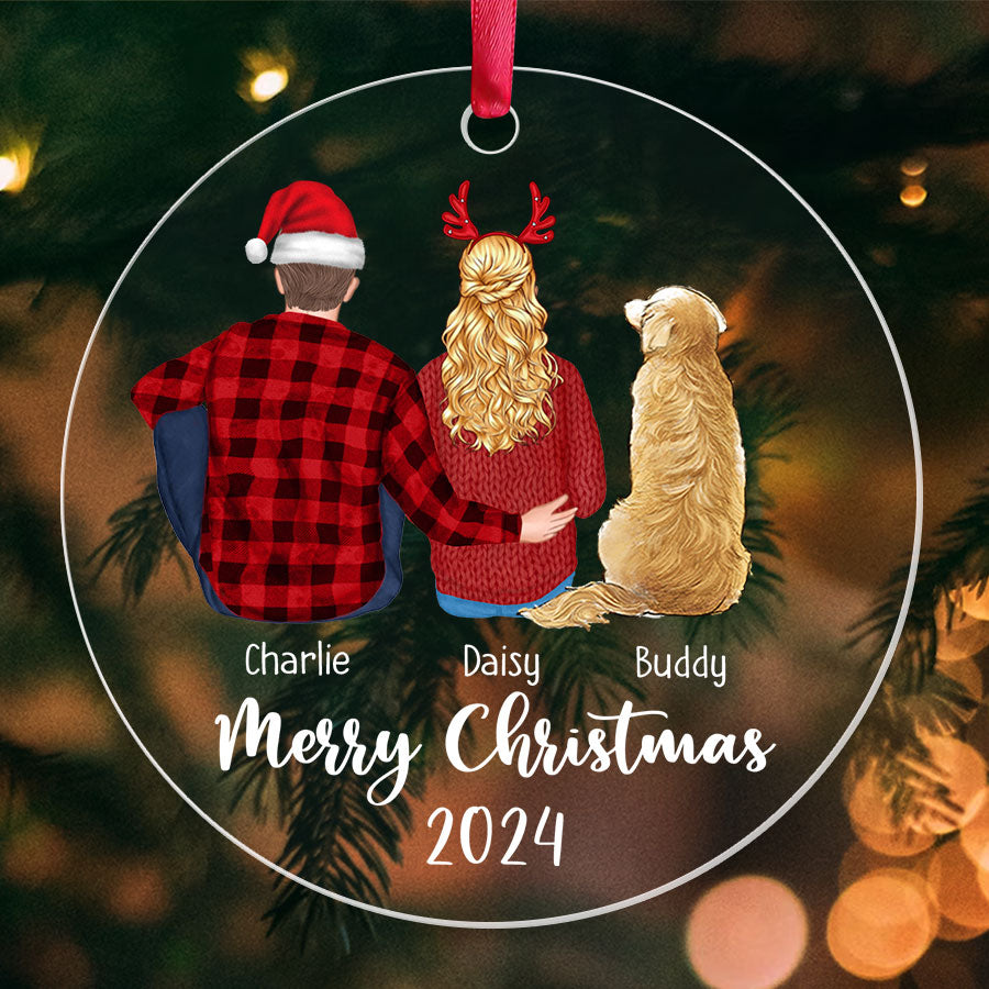 Couple and Dog Ornament | Personalized Couples Christmas Ornaments | Acrylic Ornament
