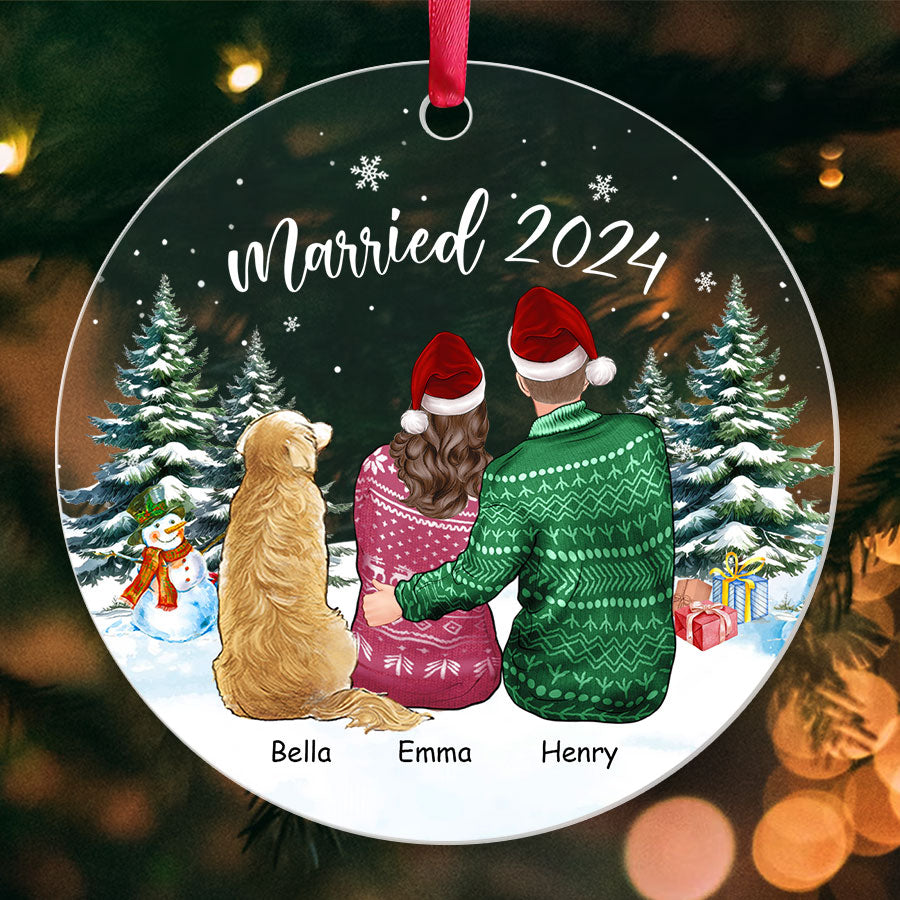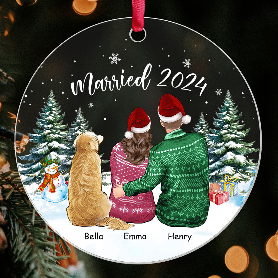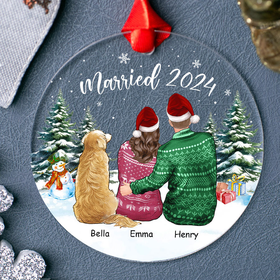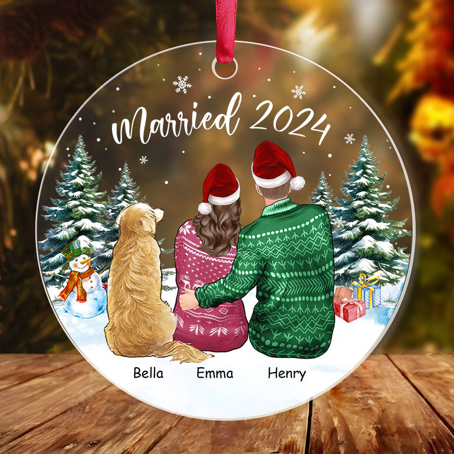 1st Christmas Together Ornament | Christmas Couple Acrylic Ornament With Dog | Circle Shape