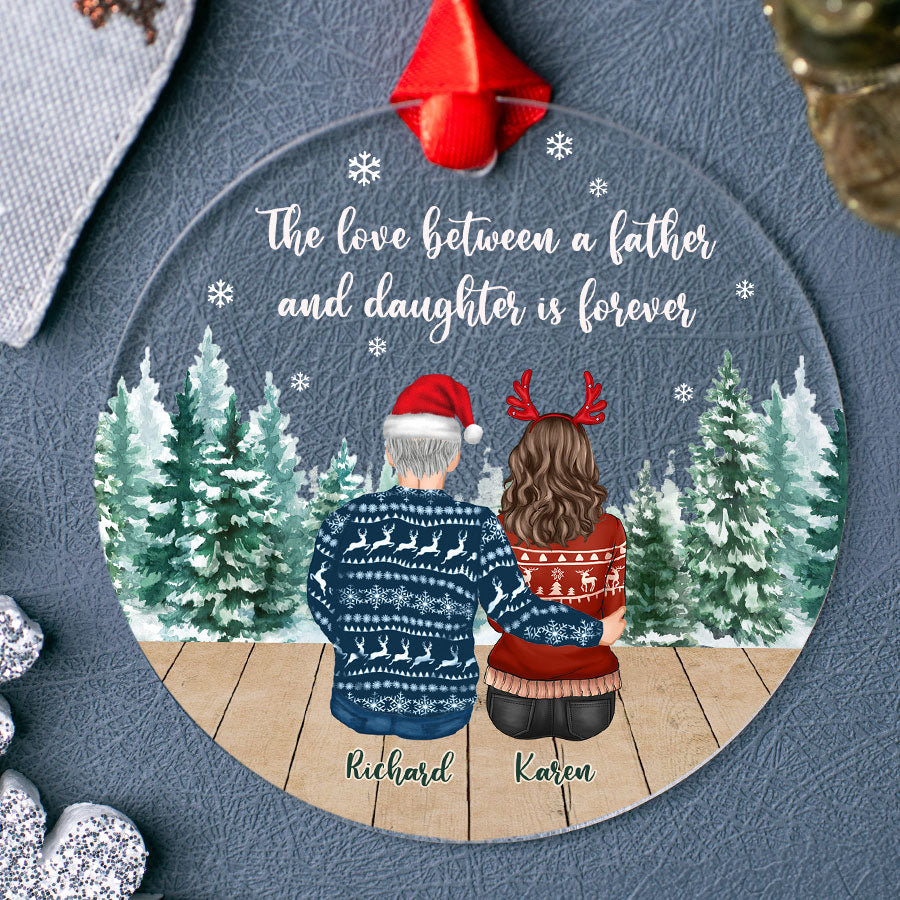 Don’t let this Christmas pass without a special keepsake that reflects your love and joy. Order your couples first christmas ornament | custom father daughter christmas ornament | circle shape today and create a lasting memory that will bring smiles for many Christmases to come! Celebrate the magic of the season with a piece that truly represents your family.