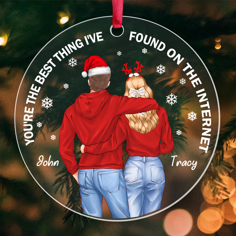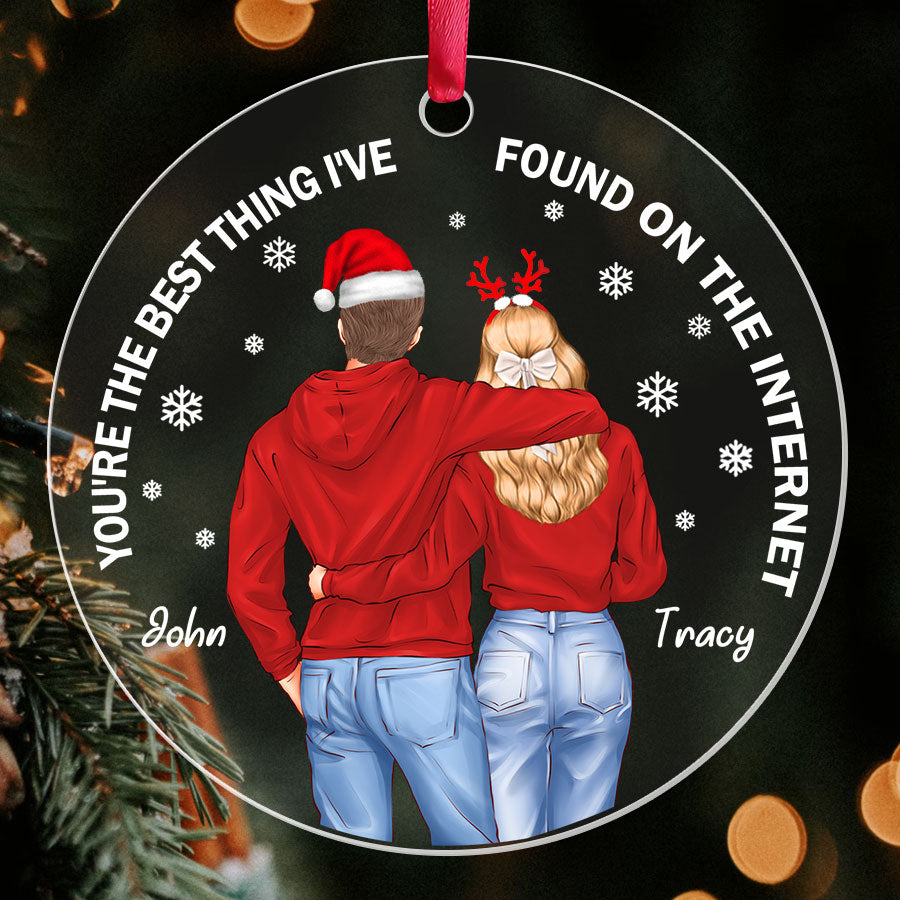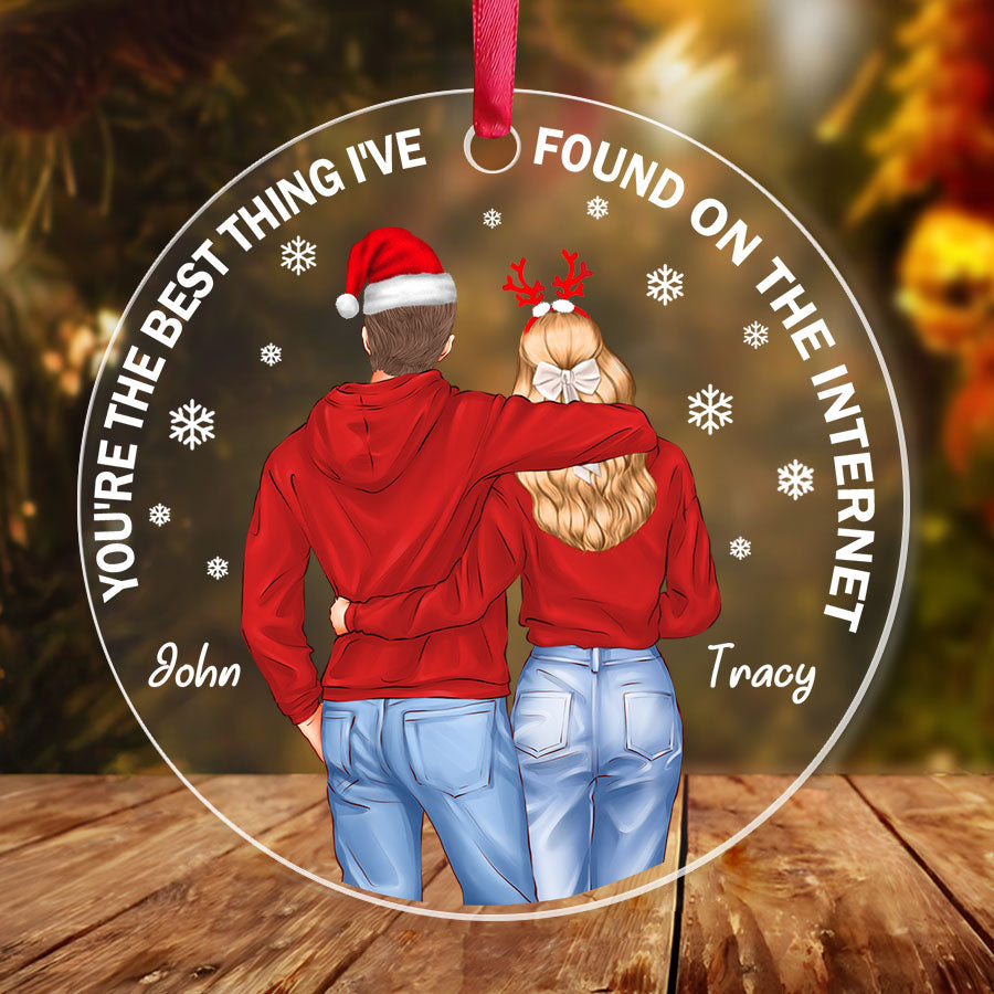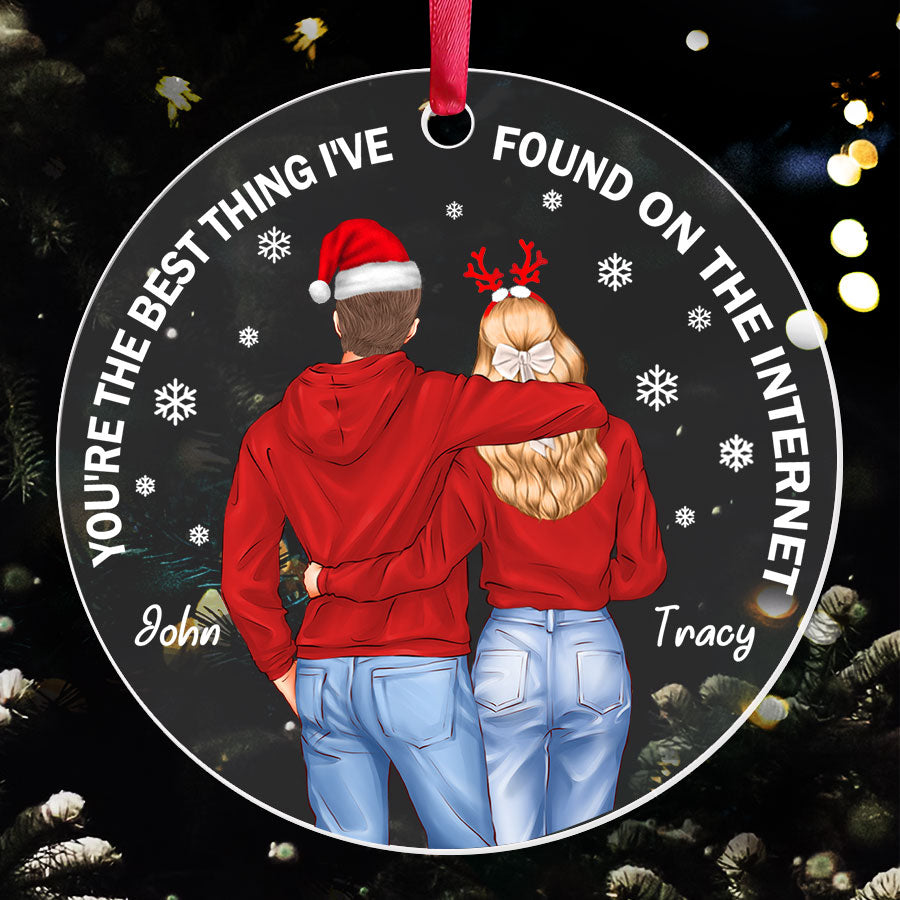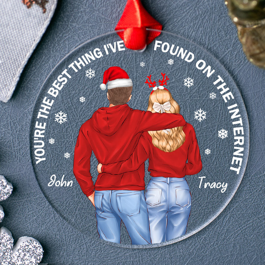 This Christmas Eve, capture the magic of the season with couples first christmas ornament | customized couple christmas acrylic ornament | circle shape that celebrates your love and your furry friend. This unique ornament beautifully encapsulates those cherished moments spent together, making it a perfect addition to your holiday decorations. This gift is the perfect personalized Christmas ornaments for couples for the ones you love. You can choose from a wide range of Personalized Christmas Ornaments, each of which can be customized with the name or image of your favorite people.