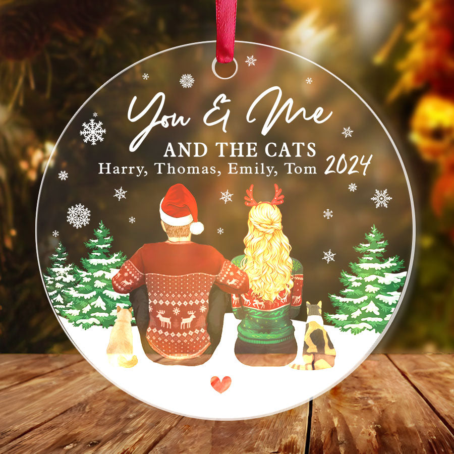 First Christmas Together Ornament | Personalized Couple Acrylic Ornament With Cats | Circle Shape