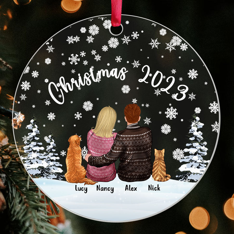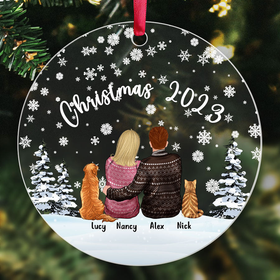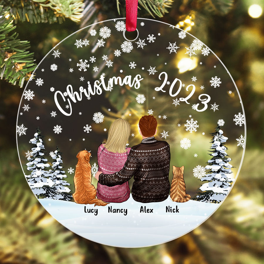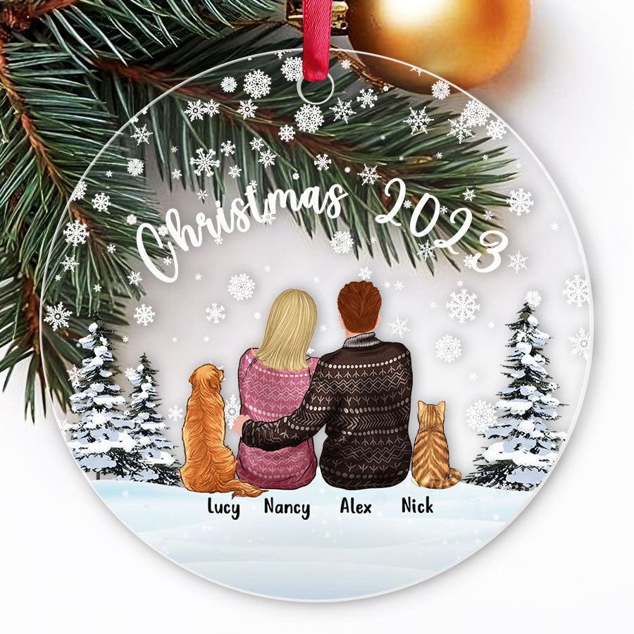 This Couples Ornament With Pets | Custom Family Portrait Dog Mom And Dad Gift is a subtle yet profound way to keep the essence of your bond on top of your mind. Each time you catch a glimpse of this ornament proudly displayed in your home, you'll be reminded of the warmth, trust, and companionship that makes your relationship special. It's a poignant symbol of the unspoken promises you've made to be there for each other through all of life's ups and downs. This gift is the perfect personalized Christmas ornaments for couples for the ones you love. You can choose from a wide range of Personalized Christmas Ornaments, each of which can be customized with the name or image of your favorite people.