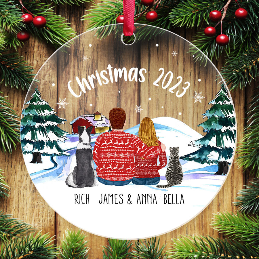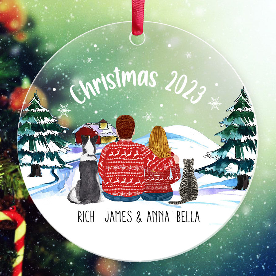Couples Ornament | Personalized Couple With Dog Ornament | Ornaments With Names | Acrylic Ornament