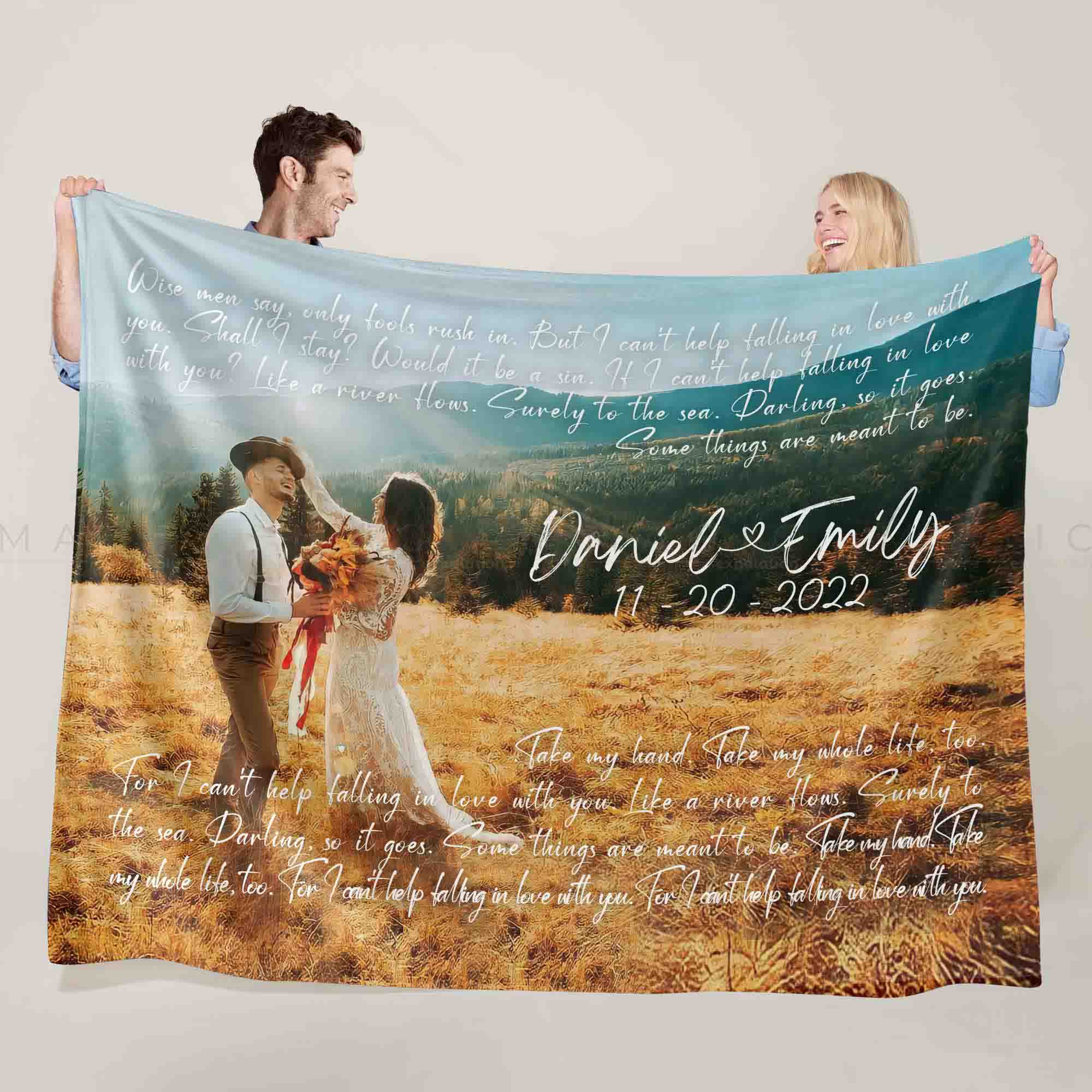 Finding perfect song lyric gifts for the music lovers, why not use song lyrics to create couples picture blanket that truly speak to your loved one? It could also be a perfect anniversary gift