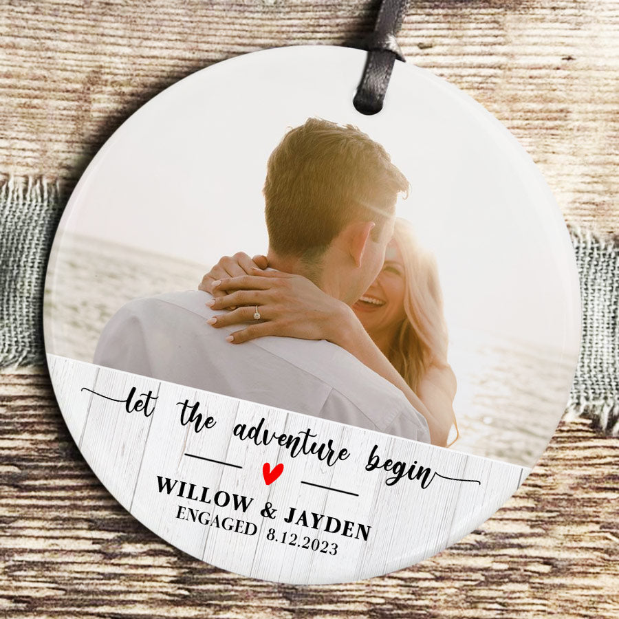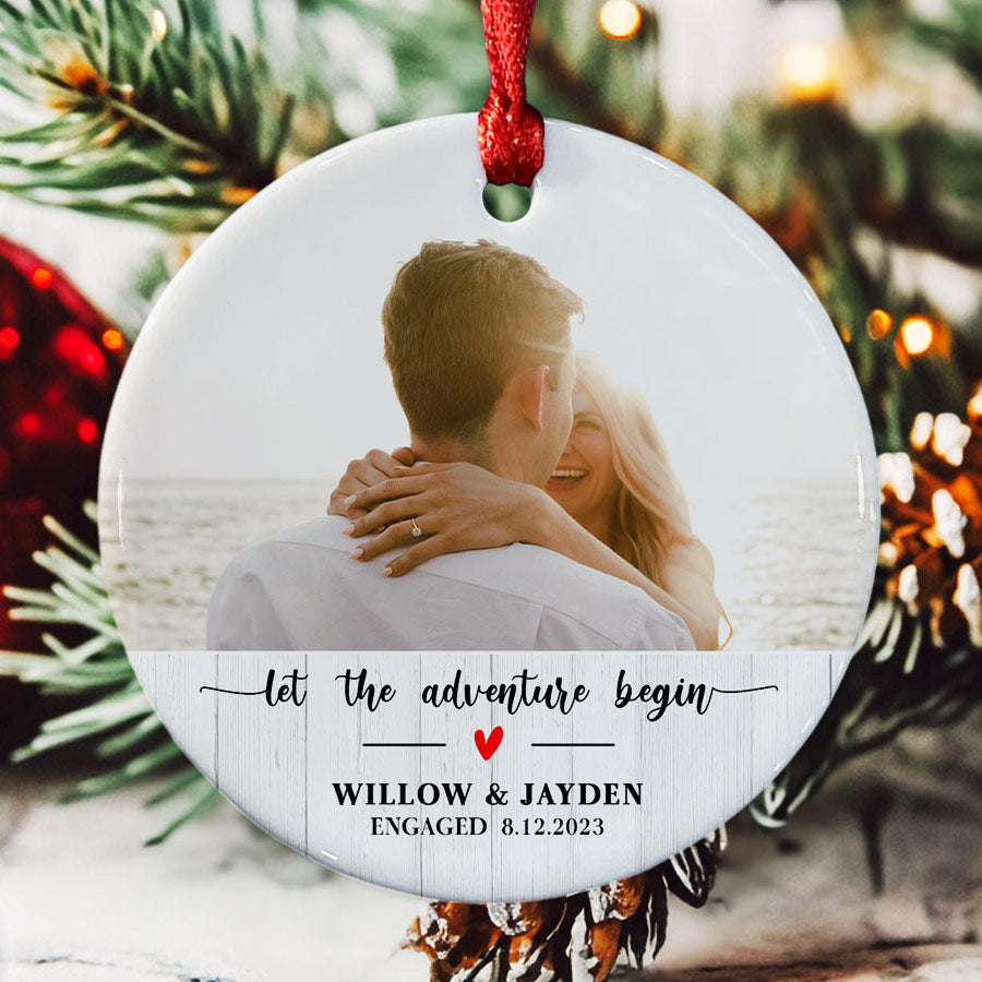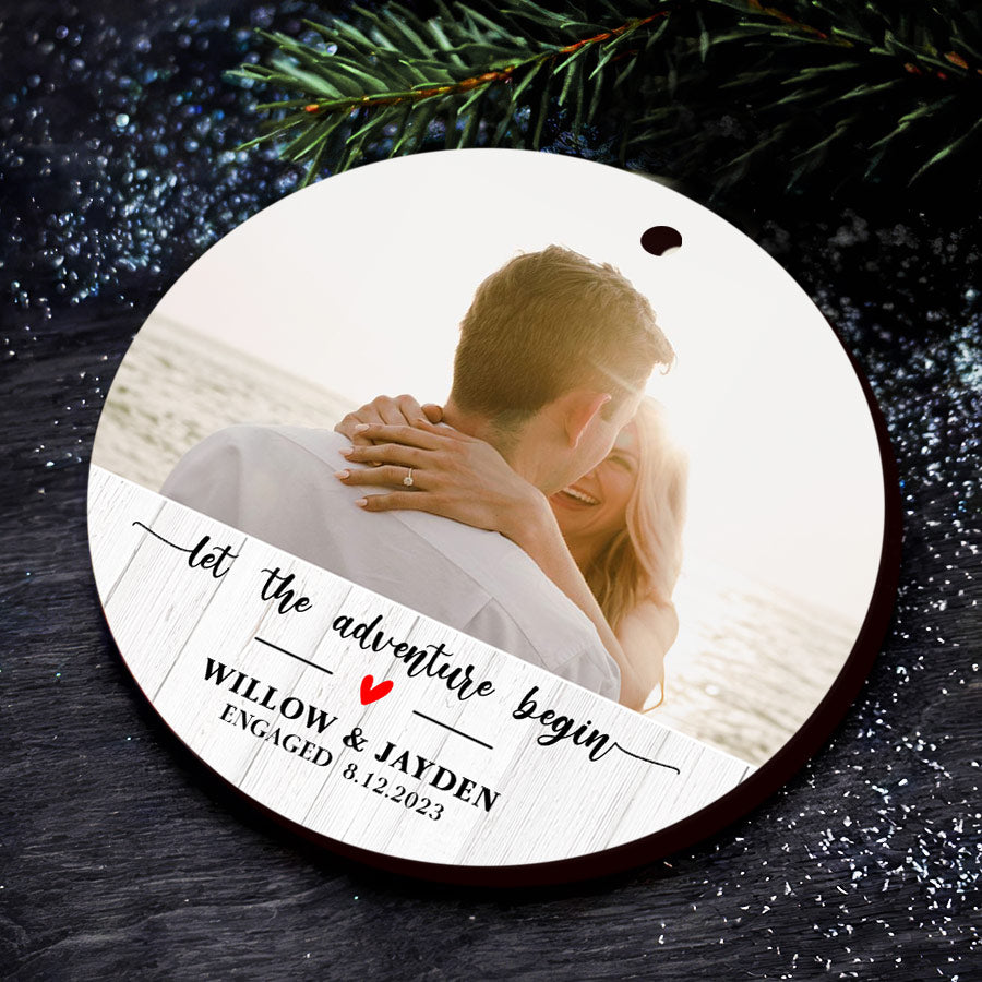 Mark your exciting new chapter with a meaningful keepsake. The custom engagement ornament | engaged photo ornament lets you showcase your joy whenever you view your tree. Engagement Ornaments create lasting memories of your special day. Display them on your Christmas tree every year to remember the beginning of the forever love story with the wonderful Personalized Christmas Ornaments.
