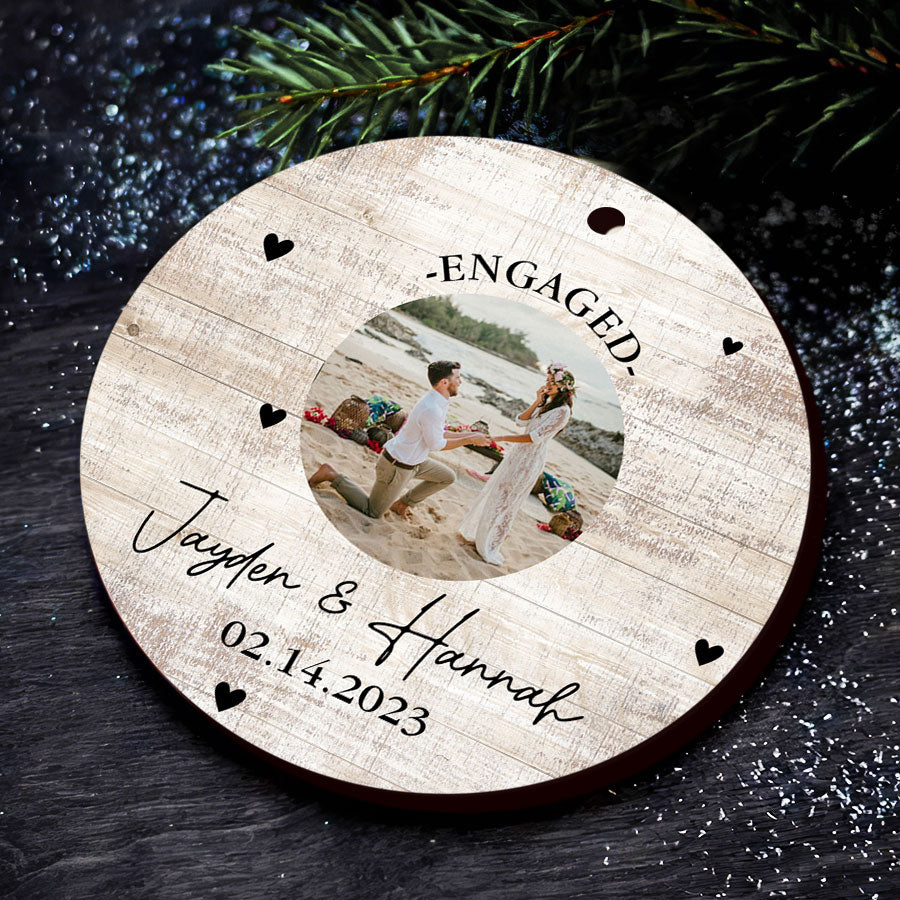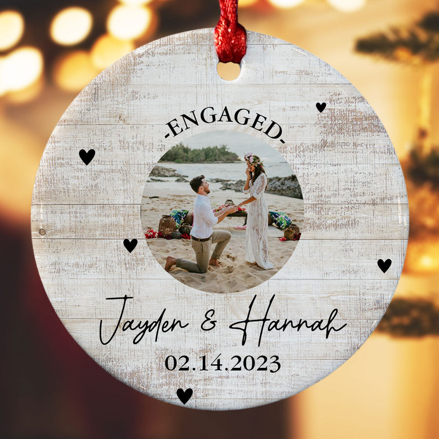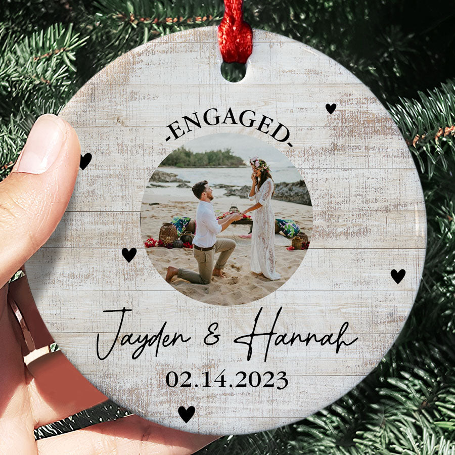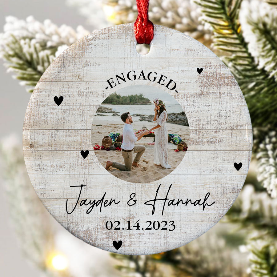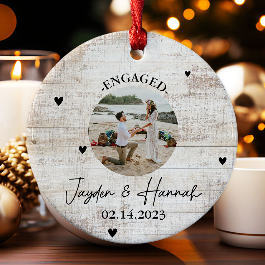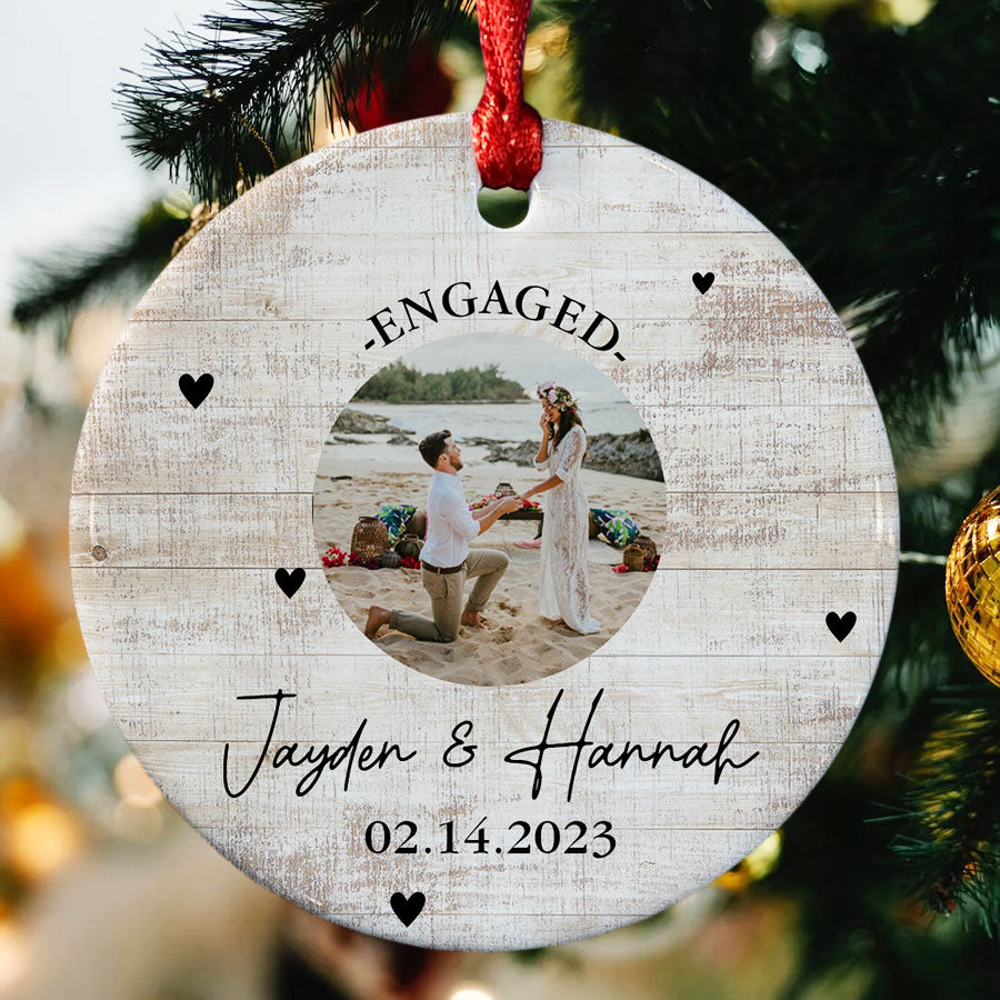 Mark your exciting new chapter with a meaningful keepsake. The custom engagement ornament | engagement photo ornaments lets you showcase your joy whenever you view your tree. Engagement Ornaments create lasting memories of your special day. Display them on your Christmas tree every year to remember the beginning of the forever love story with the wonderful Personalized Christmas Ornaments.
