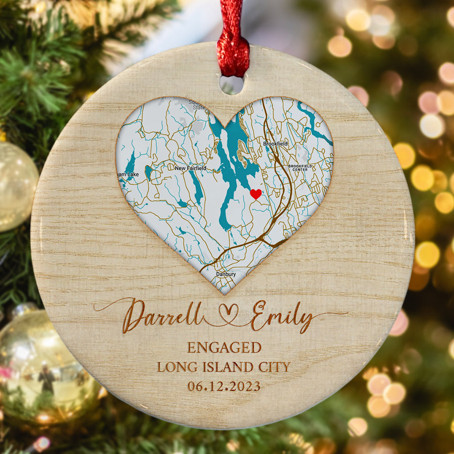 Custom Engagement Ornaments | Custom Map Ornament For Engaged Couple | Engagement Ornament 2023