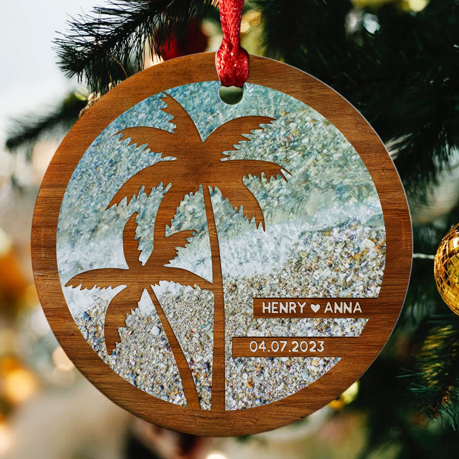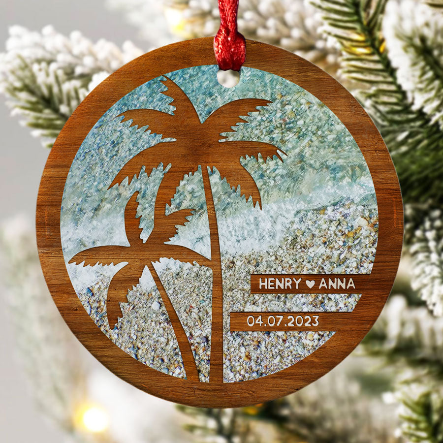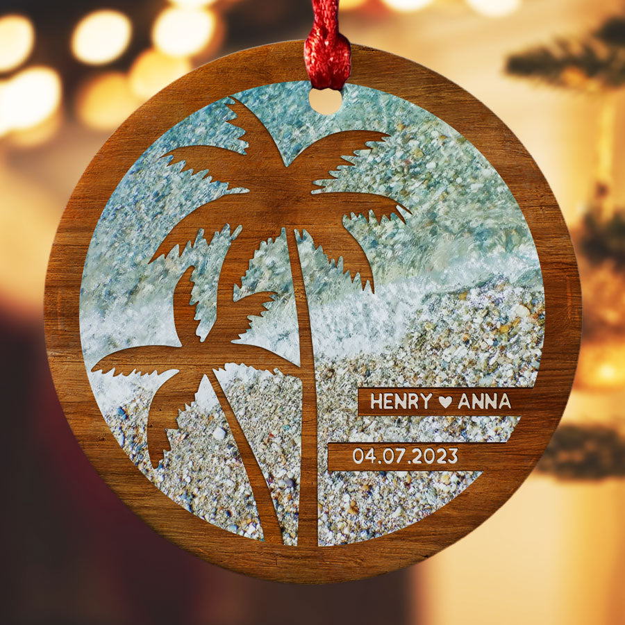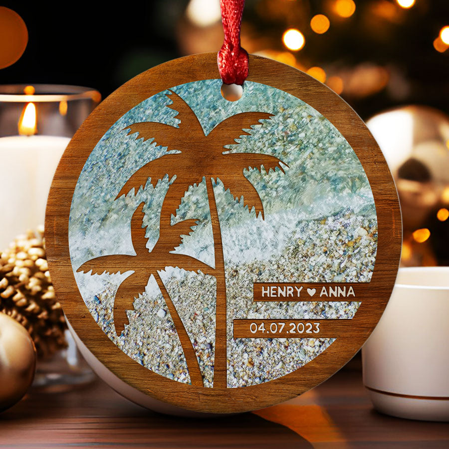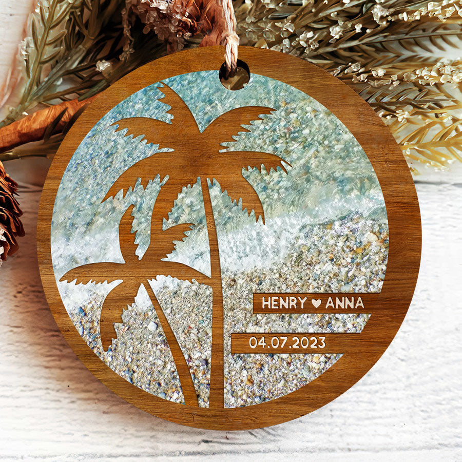 Beach Engagement Ornament | Engagement Date Ornament | Custom Engaged 2023 Ornament
