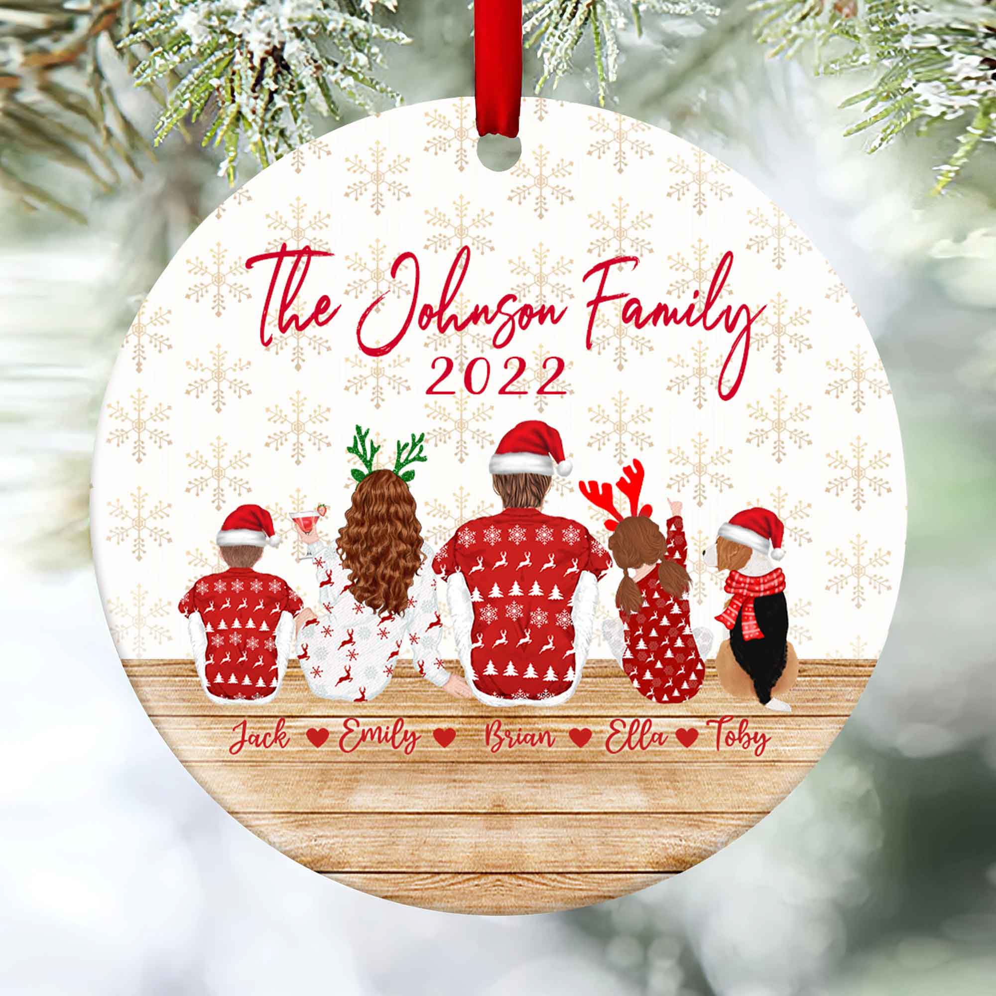 Family of 4 Christmas Ornament, Personalized Family Ornaments with Pets, Custom Name Ornaments for Christmas 2022, Customized Dog Ornaments