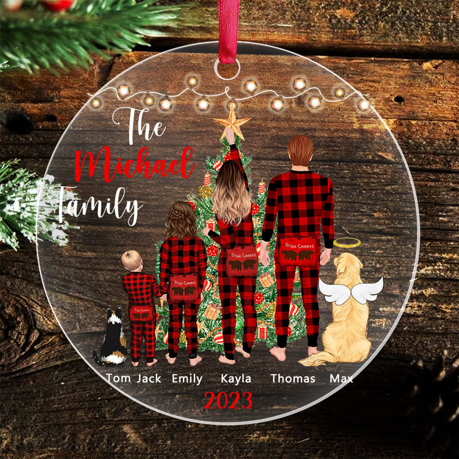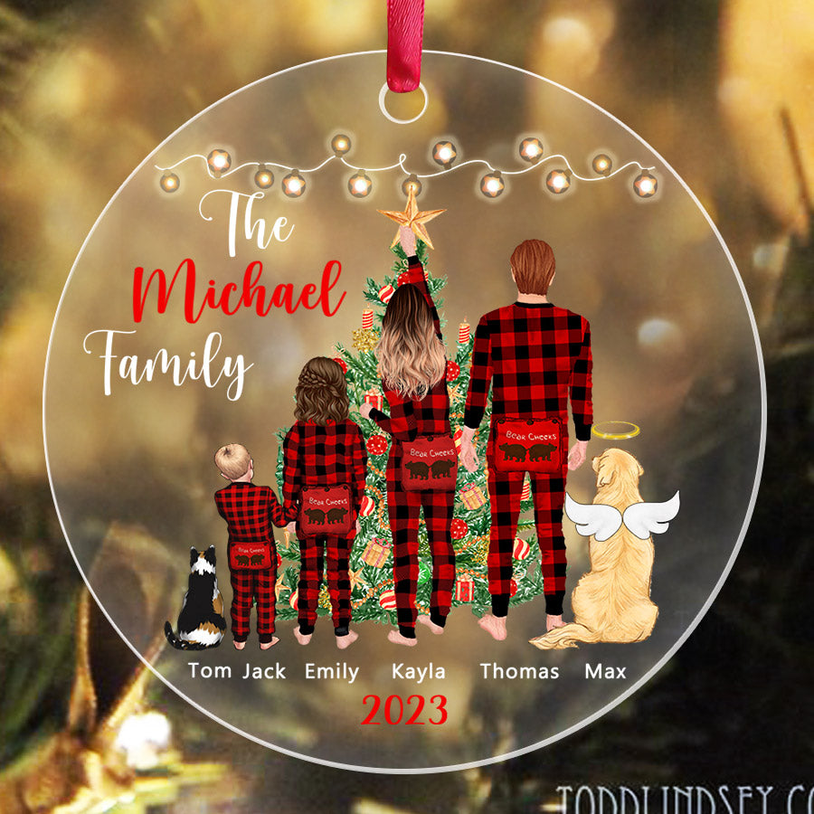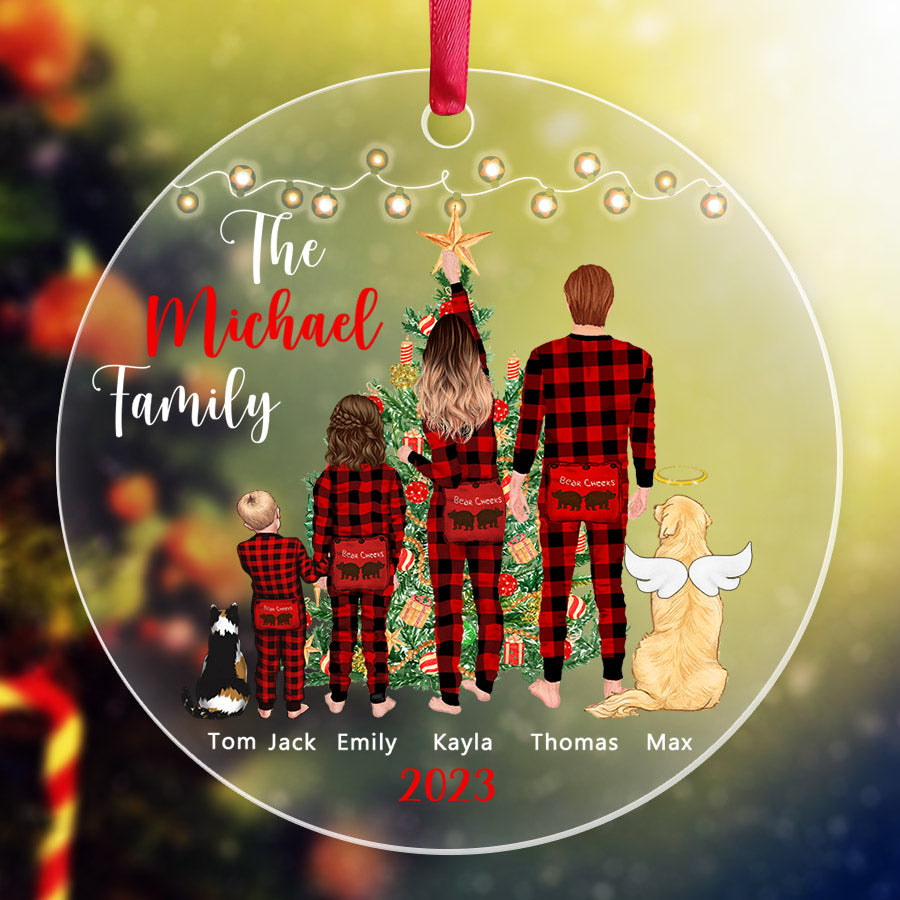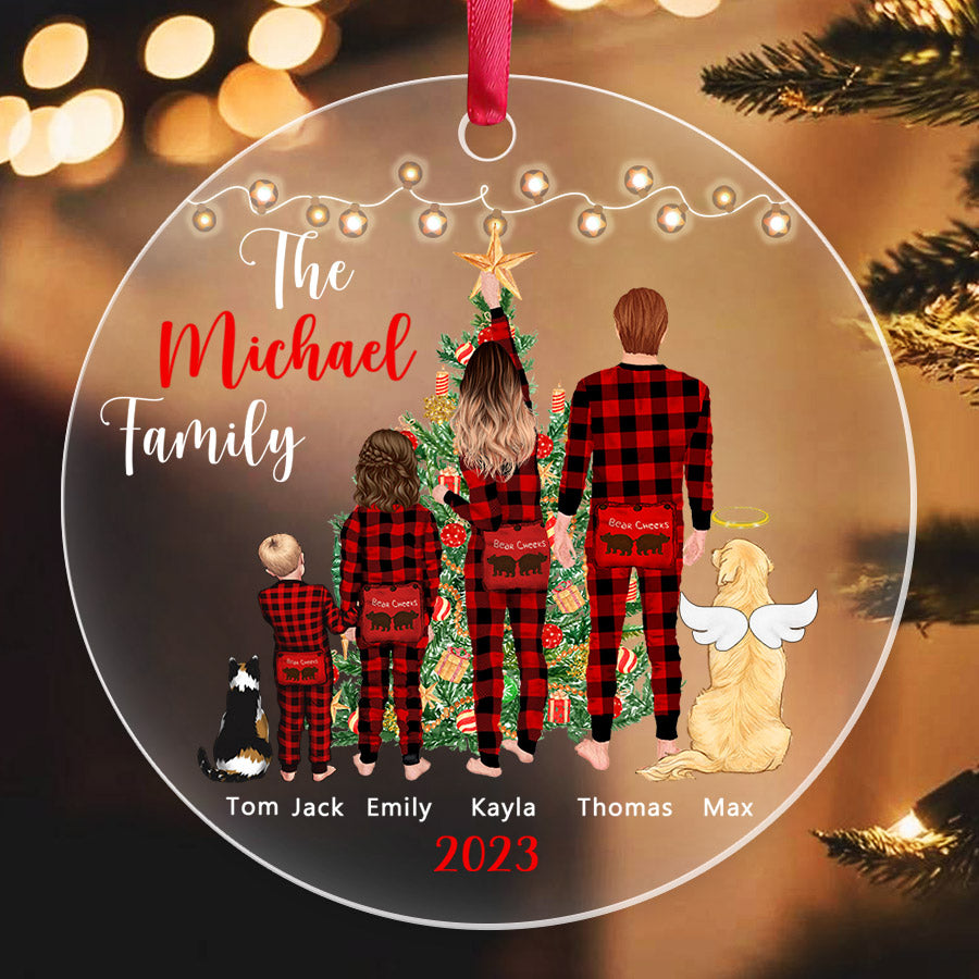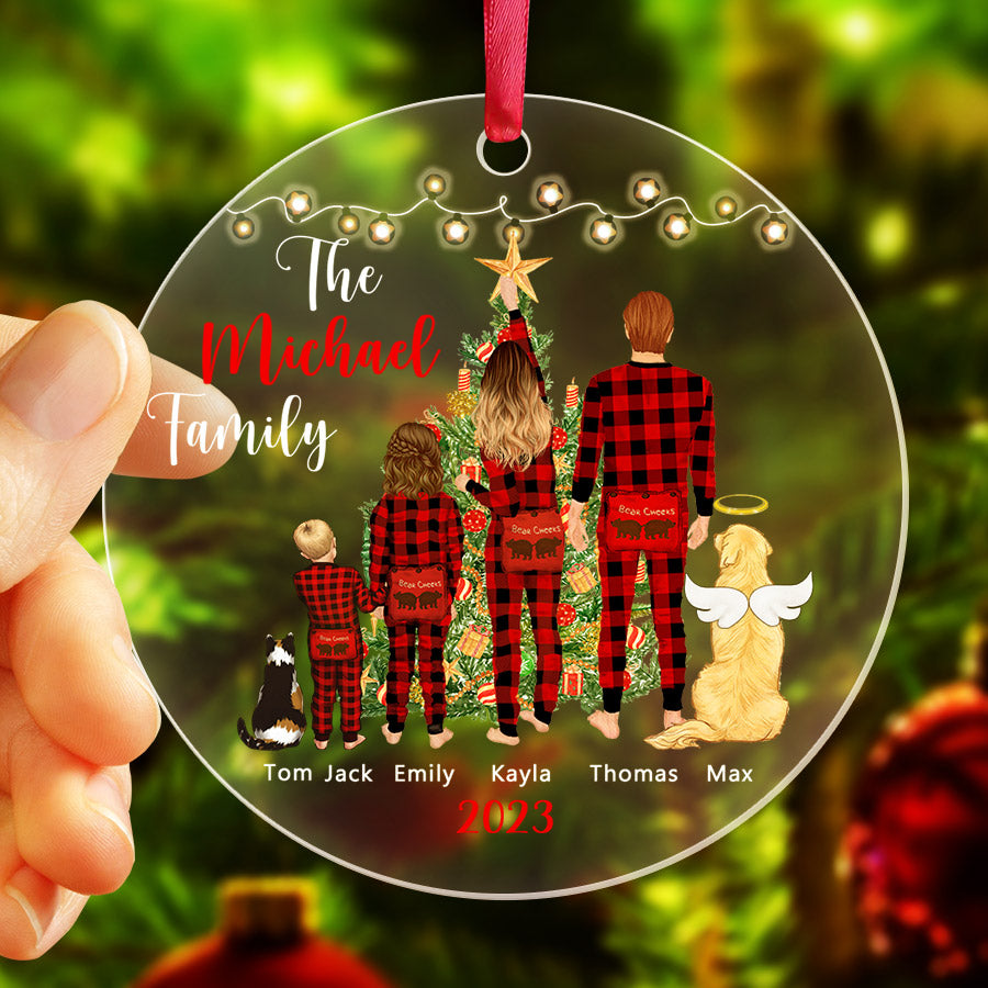 Personalized Family Ornaments With Pets | Personalized Family Of 6 Christmas Ornaments With Pets | Custom Acrylic Family Ornament