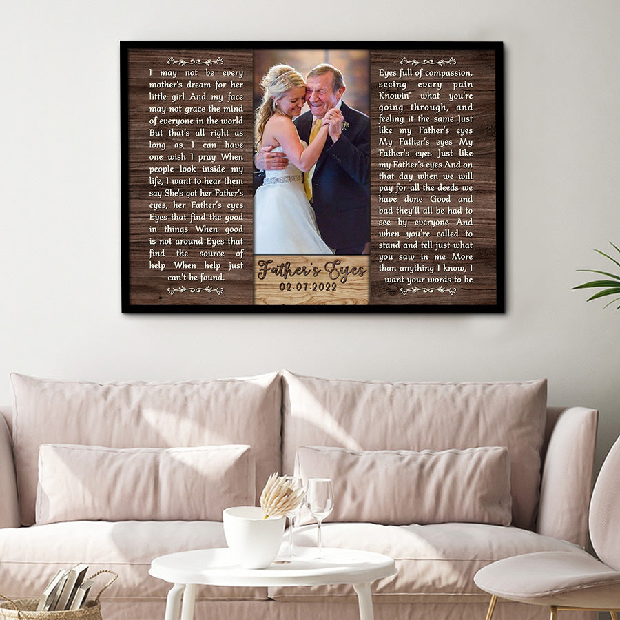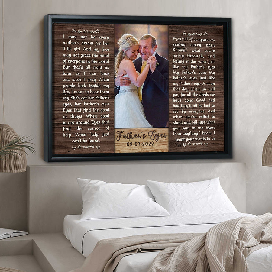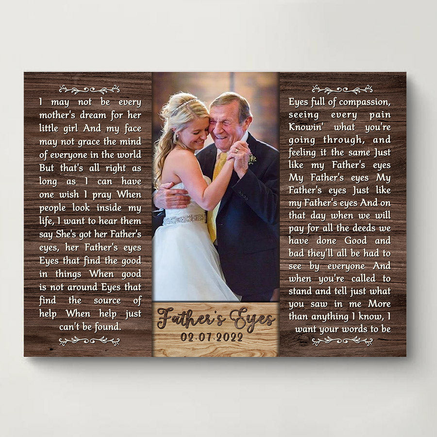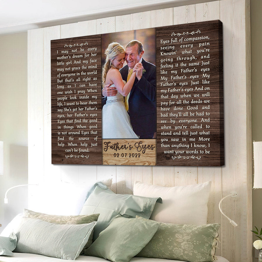 The crisp resolution of this custom father daughter gift | father daughter dance custom song lyric allows you to select photos with fine details that will be preserved for years to come. But more than just pictures, this gift conveys the deep love, gratitude and respect you feel for everything Dad has done for you. On Father's Day, a day set aside to honor fatherhood and all the hard work dads do every day, this personalized canvas is a thoughtful way to let him know how much you value him and celebrate all he has provided throughout the years.