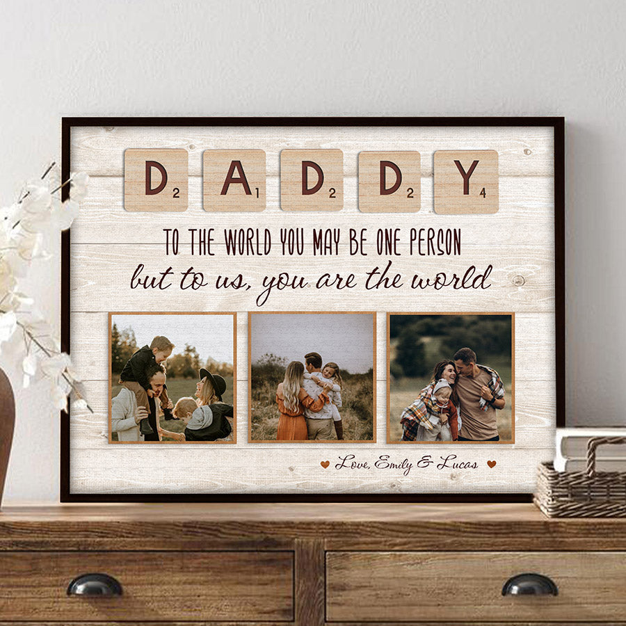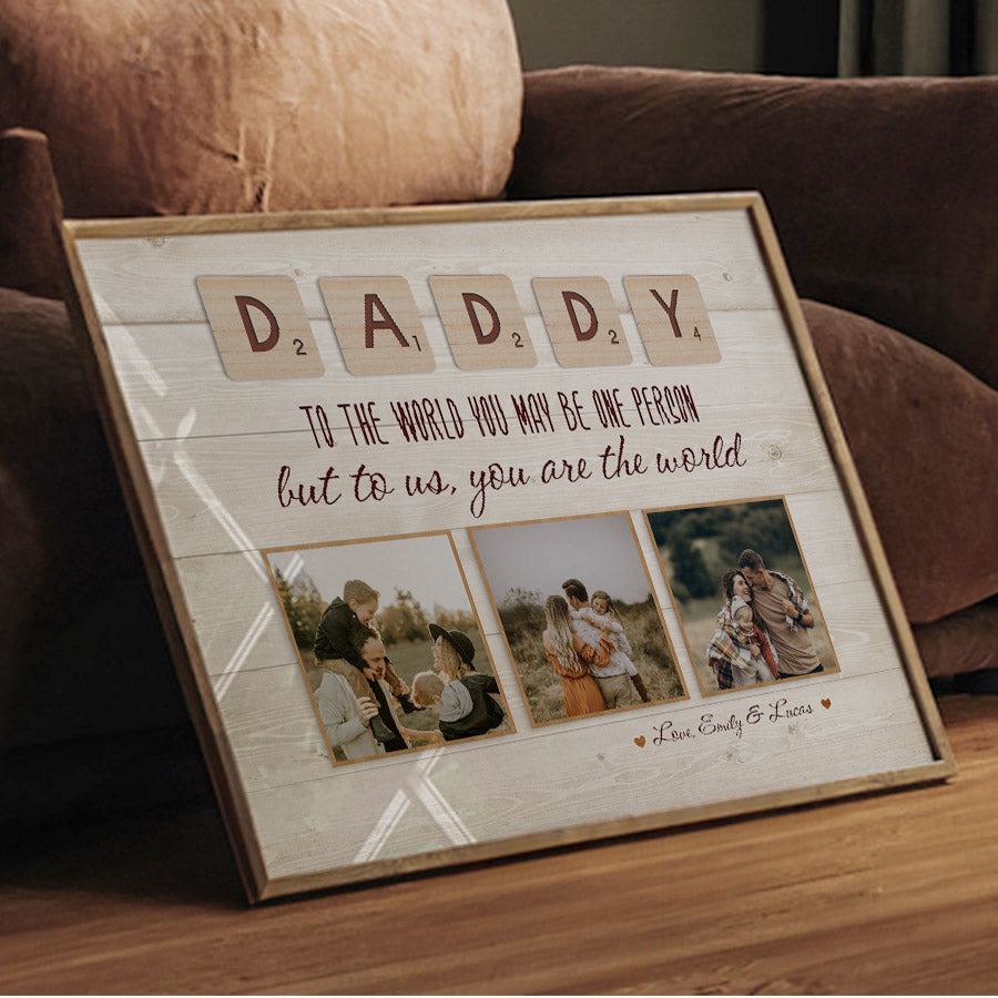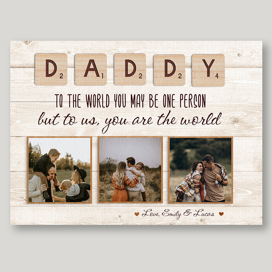 The crisp resolution of this custom fathers day gift 2024 | father's day gift custom allows you to select photos with fine details that will be preserved for years to come. But more than just pictures, this gift conveys the deep love, gratitude and respect you feel for everything Dad has done for you. On Father's Day, a day set aside to honor fatherhood and all the hard work dads do every day, this personalized canvas is a thoughtful way to let him know how much you value him and celebrate all he has provided throughout the years.