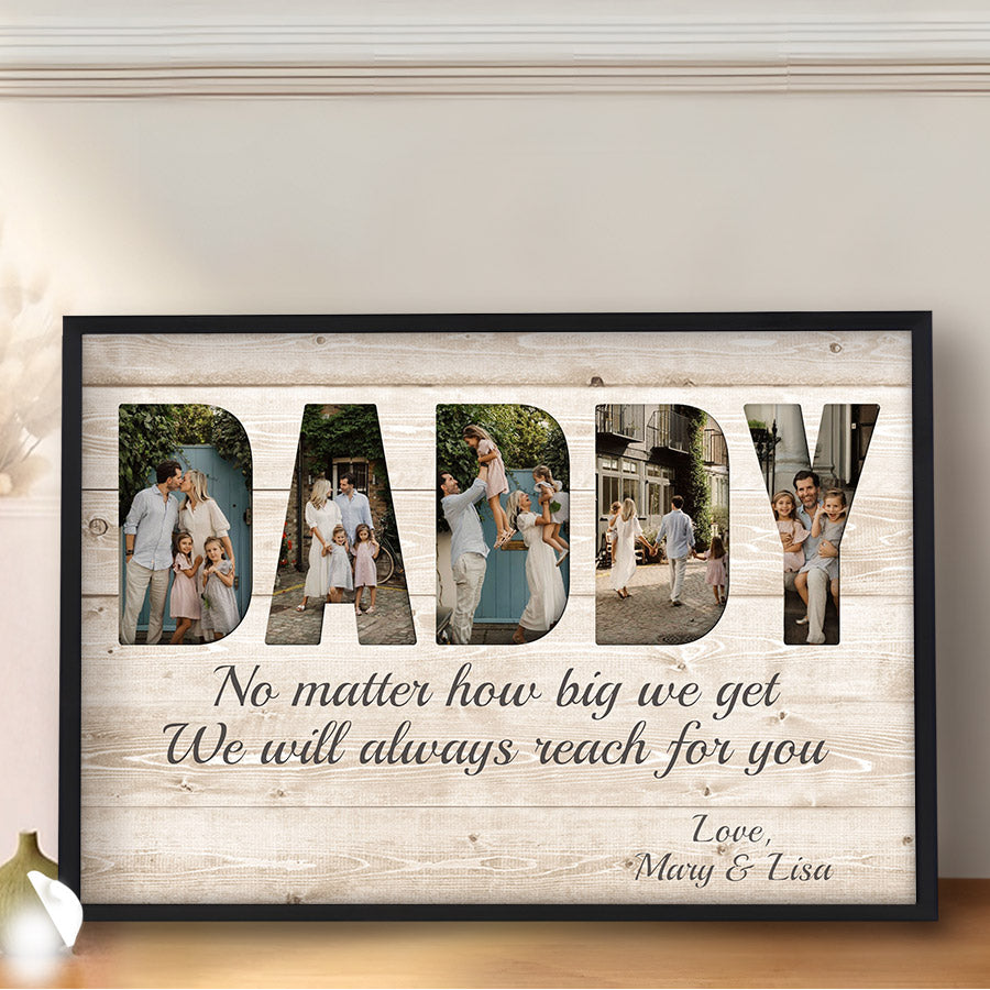 The crisp resolution of this custom fathers day gift | personalized fathers day gift | personalized father’s day canvas allows you to select photos with fine details that will be preserved for years to come. But more than just pictures, this gift conveys the deep love, gratitude and respect you feel for everything Dad has done for you. On Father's Day, a day set aside to honor fatherhood and all the hard work dads do every day, this personalized canvas is a thoughtful way to let him know how much you value him and celebrate all he has provided throughout the years.
