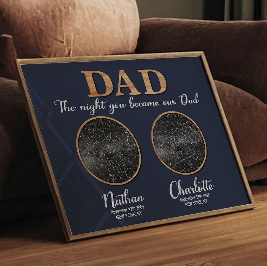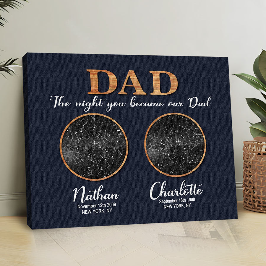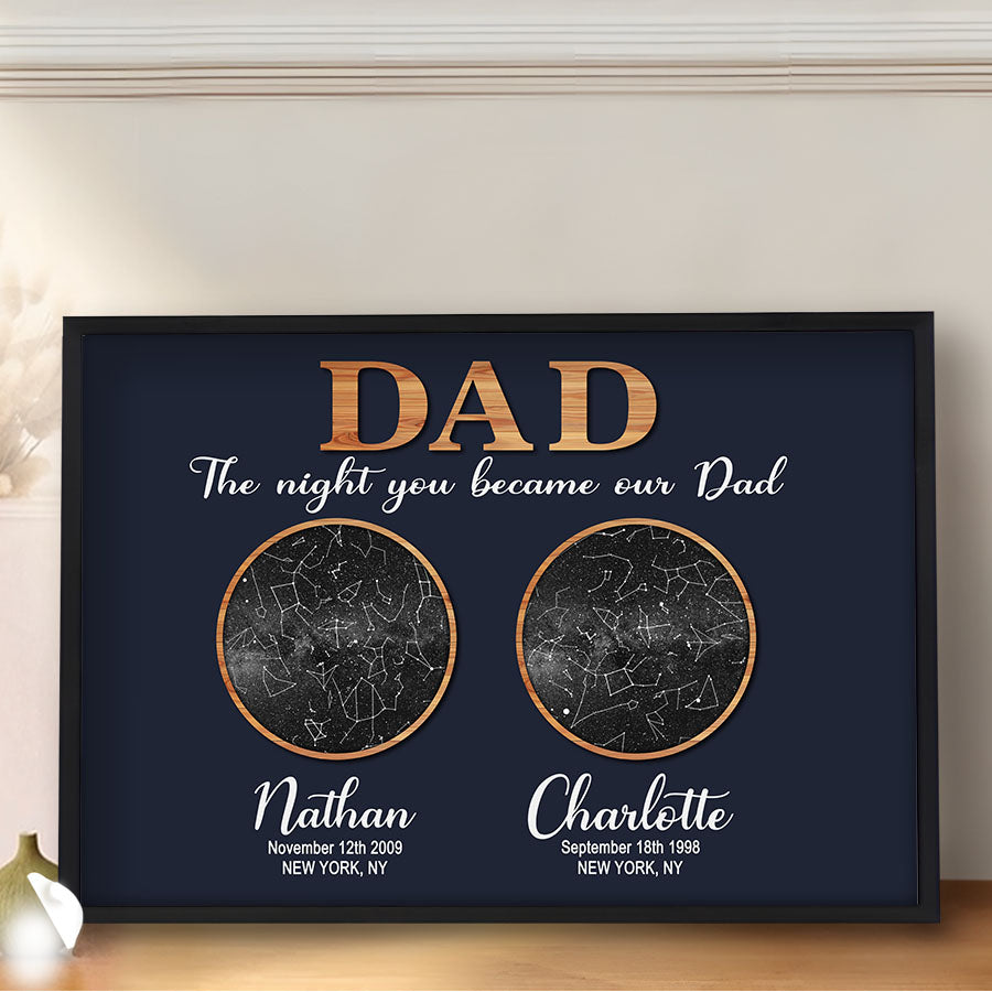 The crisp resolution of this custom fathers day gift | personalized fathers day gift | starmap canvas allows you to select photos with fine details that will be preserved for years to come. But more than just pictures, this gift conveys the deep love, gratitude and respect you feel for everything Dad has done for you. On Father's Day, a day set aside to honor fatherhood and all the hard work dads do every day, this personalized canvas is a thoughtful way to let him know how much you value him and celebrate all he has provided throughout the years.