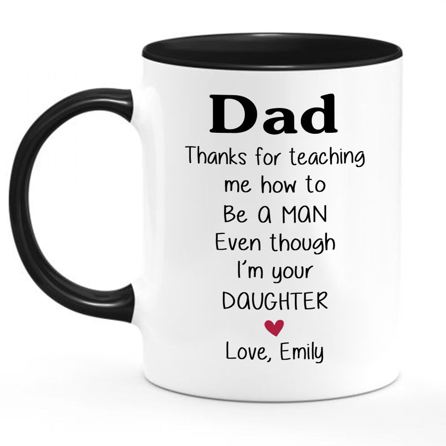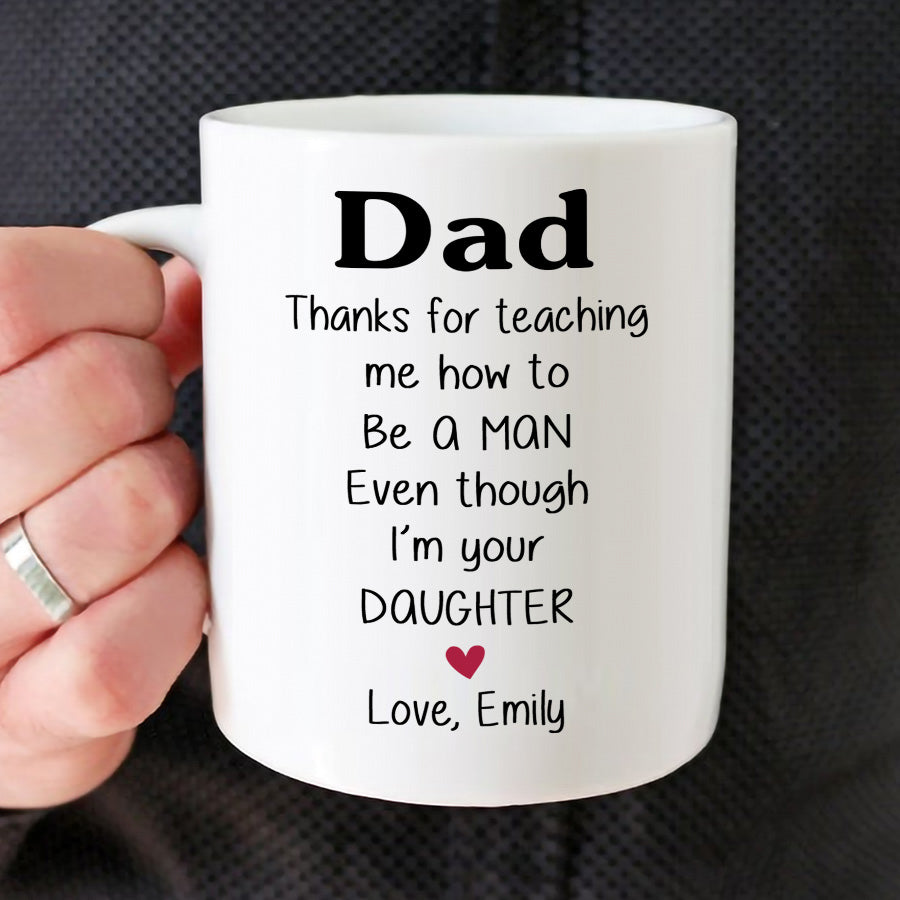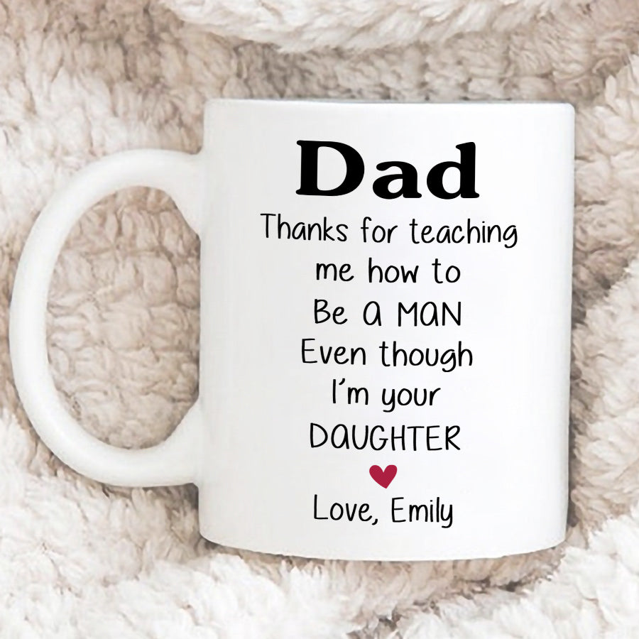 This custom Dad mug is the perfect gift to celebrate your bond with your father. A custom fathers day mug is a simple yet meaningful Father's Day gift that shows you were thinking of him throughout the year. When you give dad mug, you're giving him a place for his favorite drink and a reminder of your gratitude for all that he does. That morning cup of coffee in his personalized mug will bring a smile to his face and memories of the moments you've shared together.