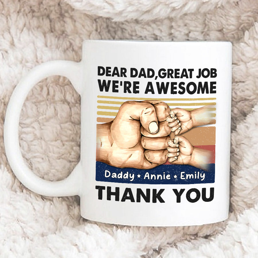 Custom Father'S Day Mug | Custom Mugs With Names | Dear Dad Great Job We'Re Awesome