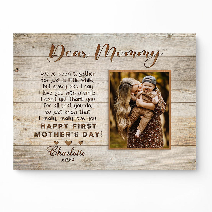 The memorable custom first mothers day gift | dear mommy mother’s day canvas on her special day. These extraordinary personalized first Mothers Day gifts are more than just a piece of art; it's a heartfelt tribute to the incredible woman who has made a lasting impact on your life.