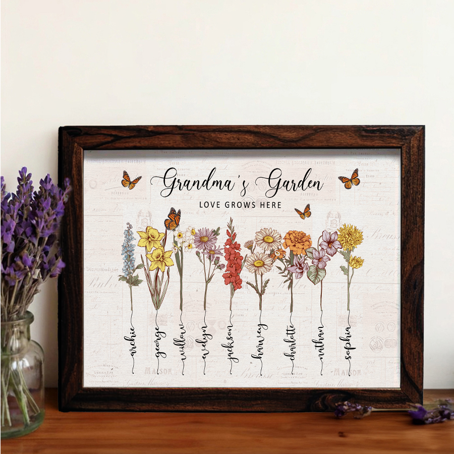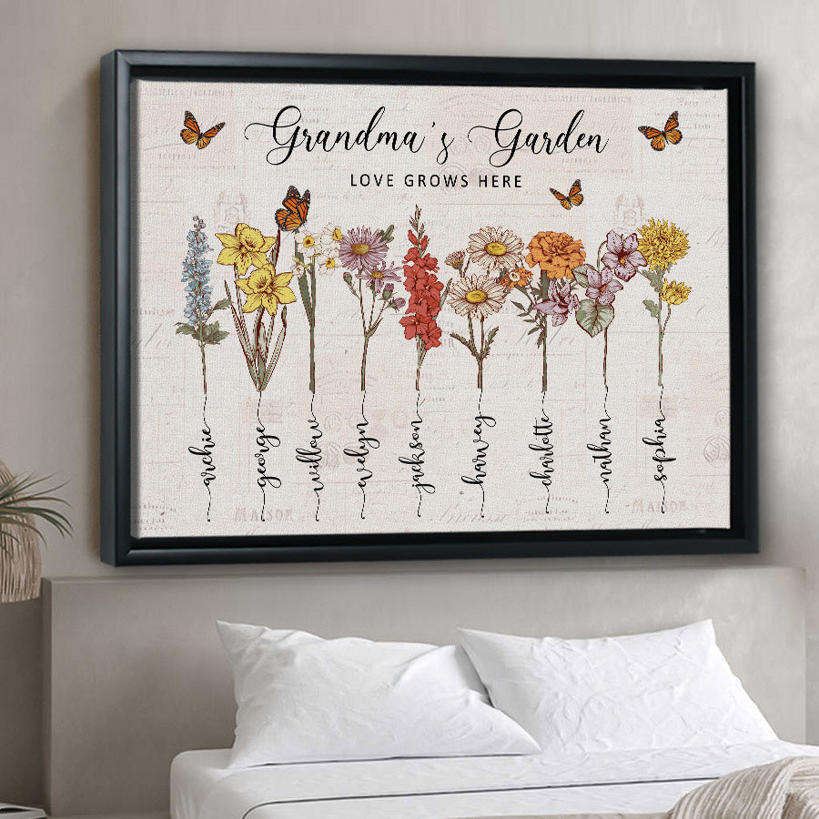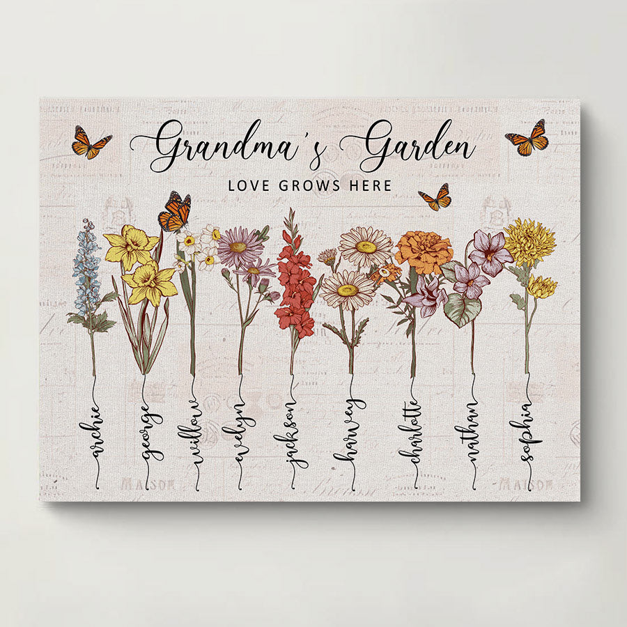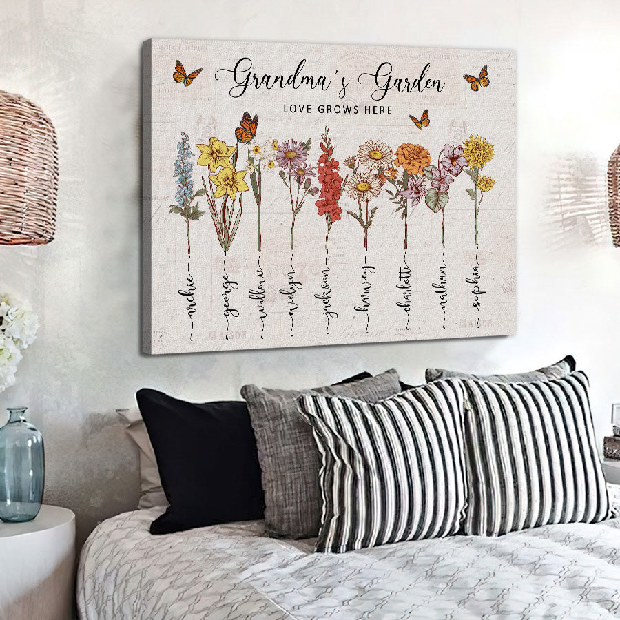 Customized Gifts For Grandma | Personalised Mothers Day Gifts For Grandma | Custom Birth Months Canvas For Grandma | Grandma Garden Gifts