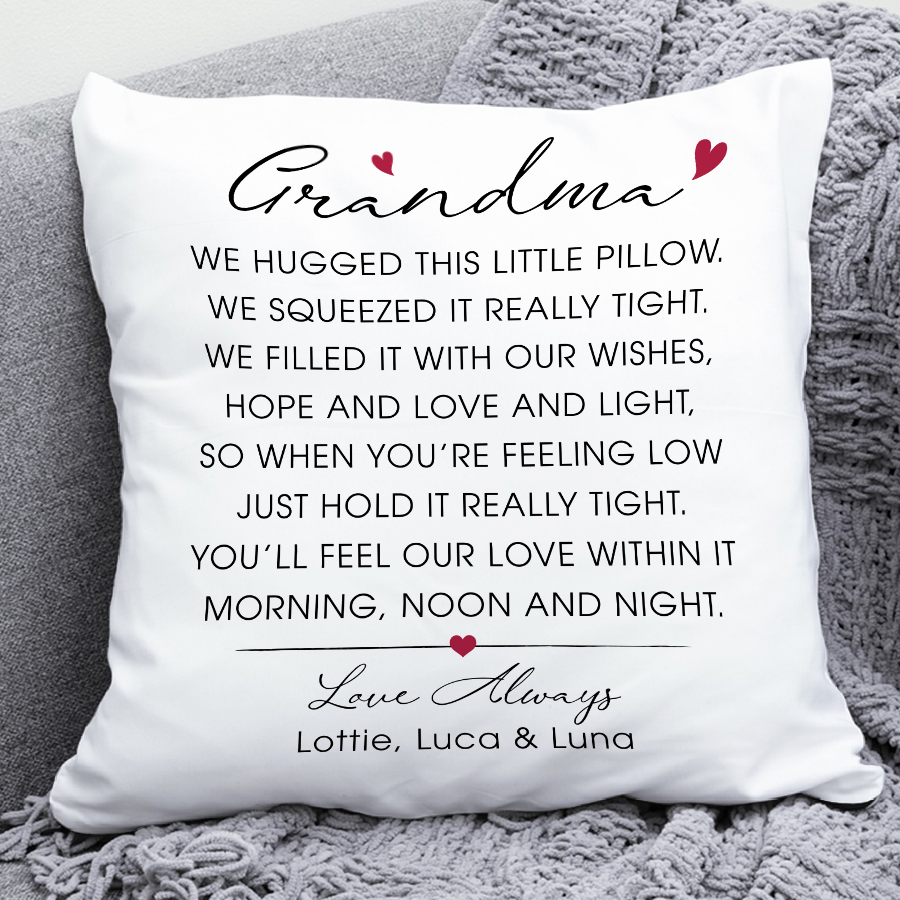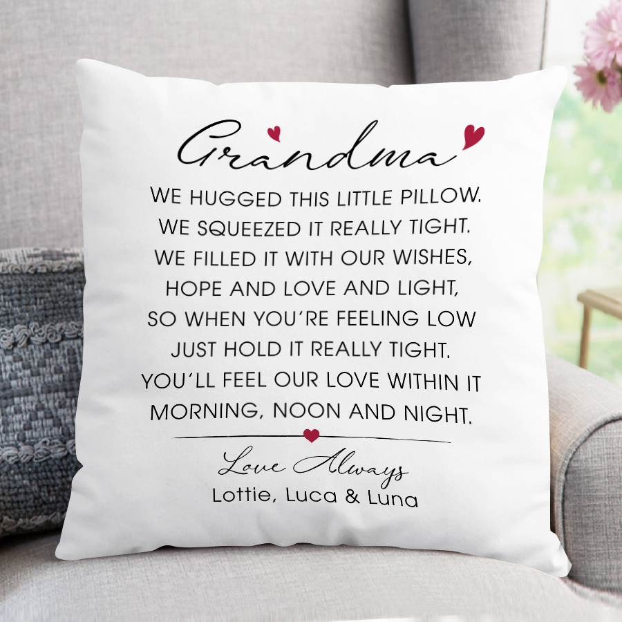 Looking for the perfect custom gifts for grandma | personalised mothers day gifts for grandma to express your love and appreciation to Grandma this Mother's Day? Our pillow is just what you need! This isn't just any ordinary gift – it's the heartfelt personalized gifts for grandma that will make her feel cherished and appreciated. This delightful and cozy pillow is more than just a decorative piece; it's a heartfelt symbol of the love and warmth you have for your beloved Grandma.