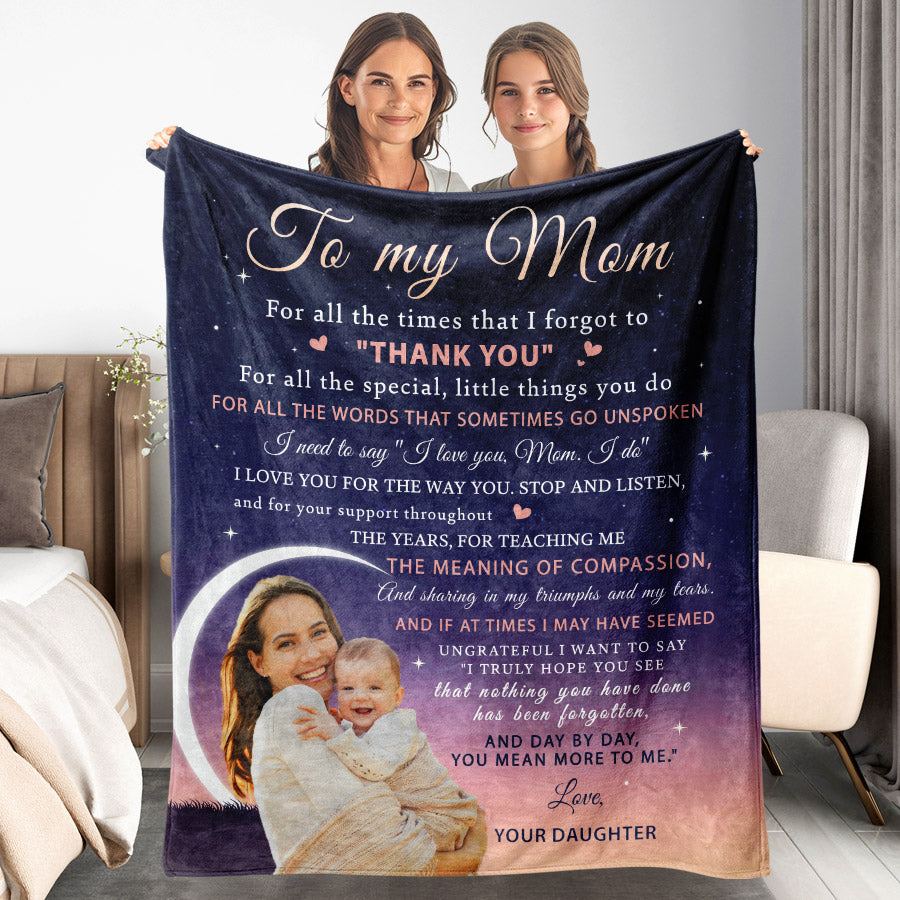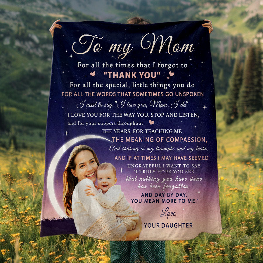 Shop now and create a custom blanket that will bring a smile to her face and warmth to her heart. Give her a gift she'll treasure for years to come. Order your custom gifts for new mom | mothers day gift for new mom blanket today and let your mom know she holds a special place in your heart.