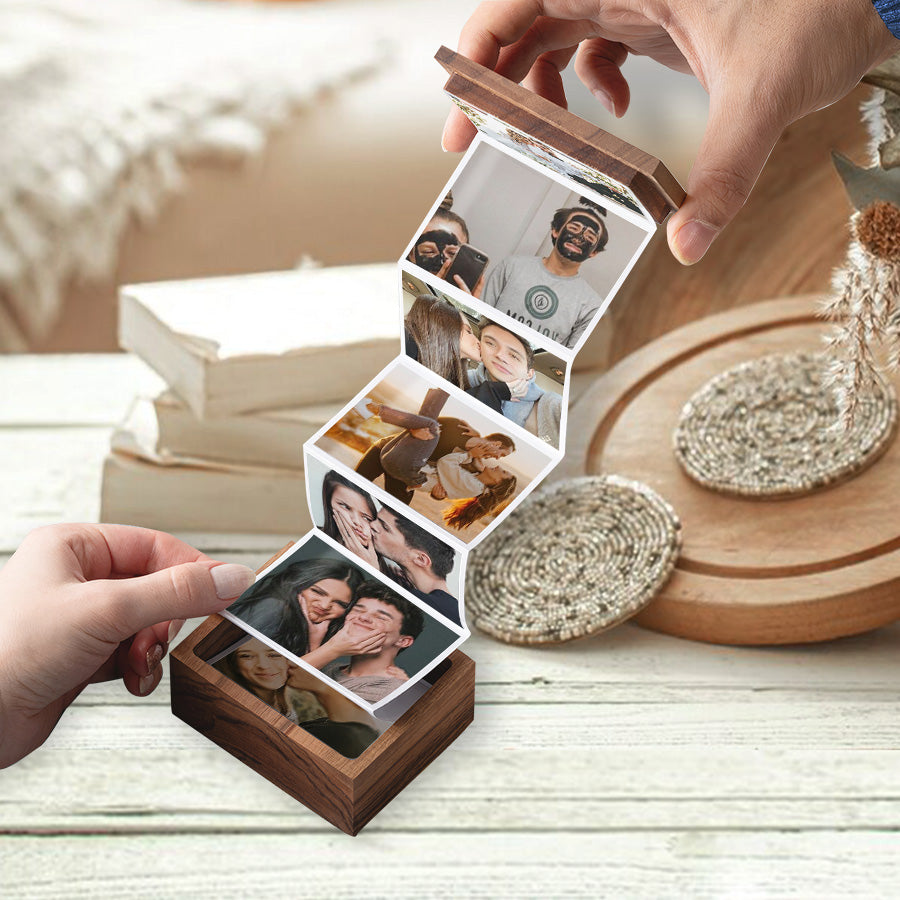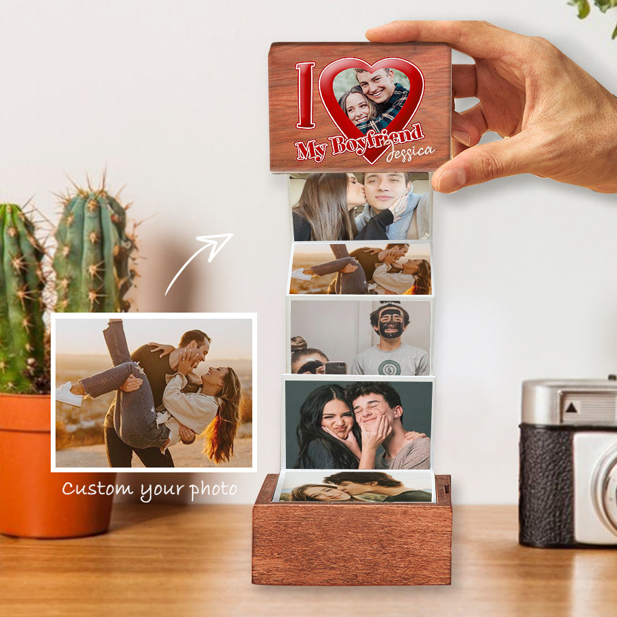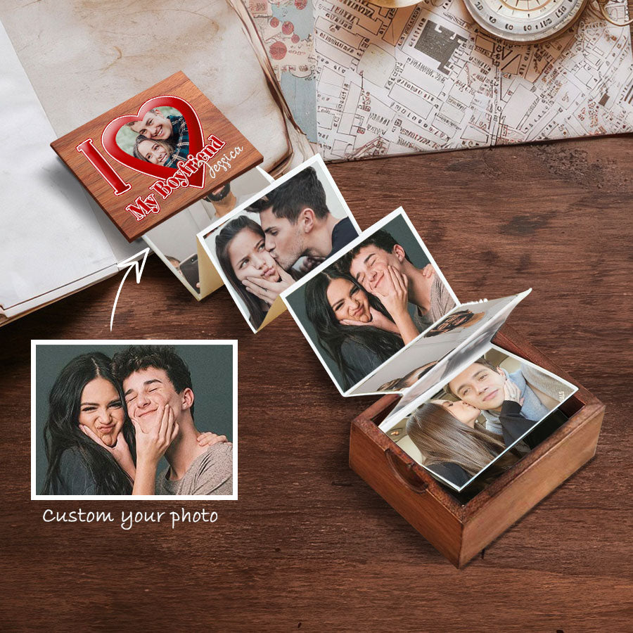 Custom Valentine’S Day Gifts For Him | Valentines Personalised Gifts | Wooden Box Photo Gift | Personalized Pull Out Photo Album