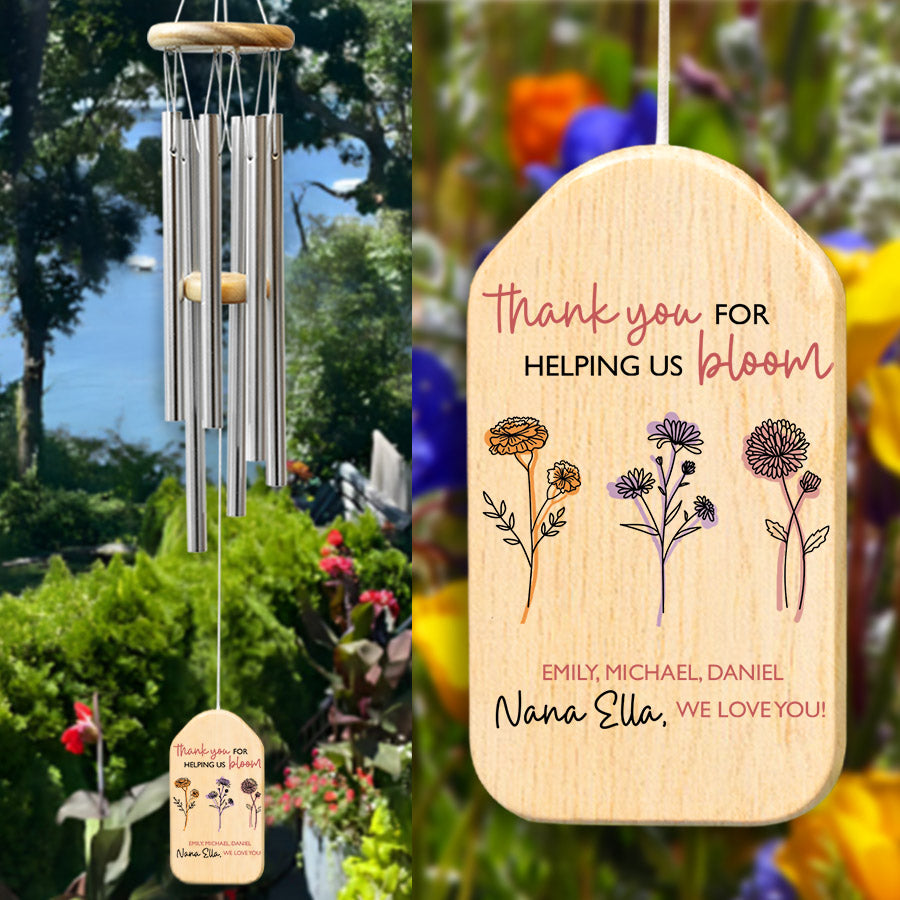 Treat the special grandmother in your life to custom grandma gifts | personalized mothers day gift with lasting meaning. Purchase this memorable windchime today and create memories that will echo in her heart for seasons to come.