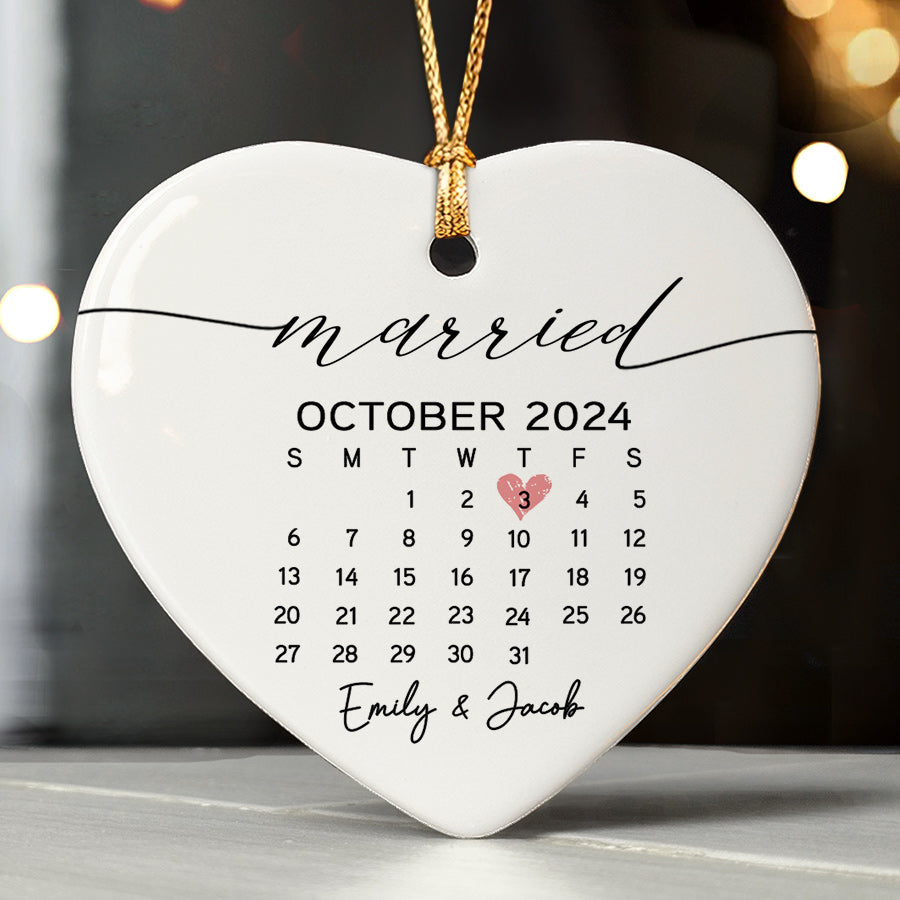 Custom Married Ornament for Bride | Heart Shape Calendar Gift