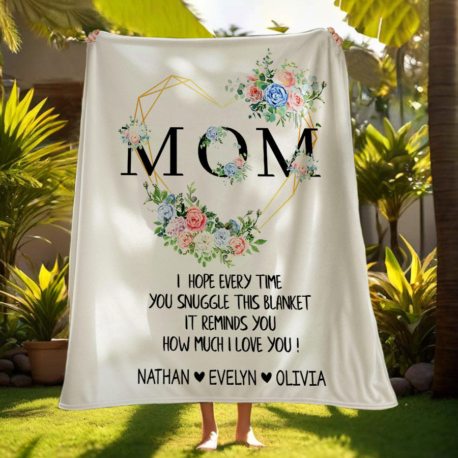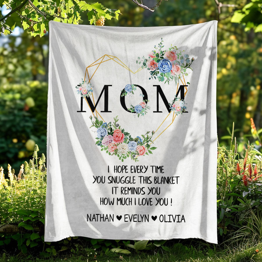 Show mom just how much you care this Mother's Day. Wrap her in the comfort and memories of family with this personalized blanket custom mothers day gifts | best personalized gifts for mom. Purchase one for the special mother in your life today - her new favorite way to feel your love is just a click away.