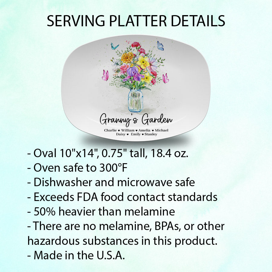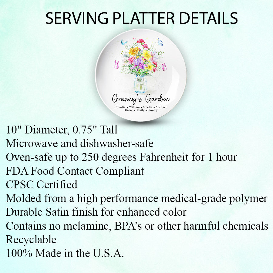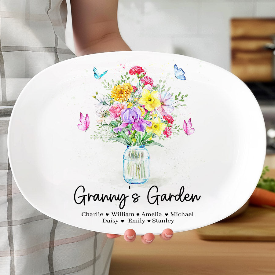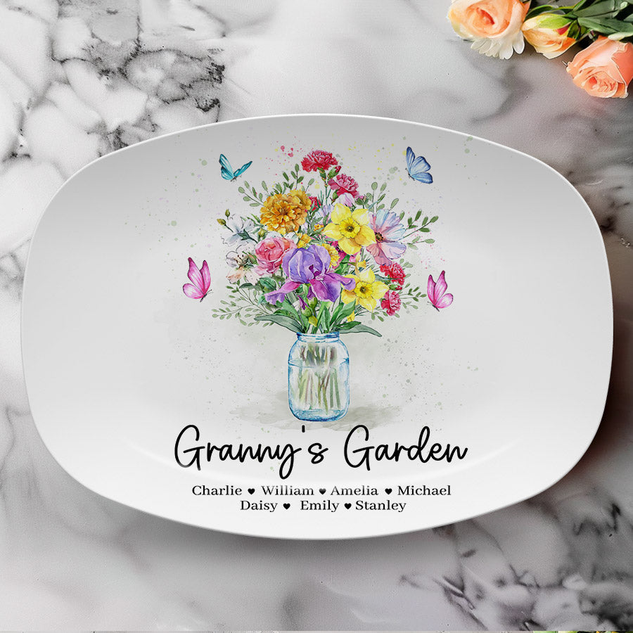 Bring joy to grandma's garden with this one-of-a-kind grill plate that she is sure to treasure. Customize free custom mother’s day gifts for grandma | garden gifts for grandma with an assortment of color images representing the birth month flowers of her precious grandchildren. What better way to honor all the memories made in her special outdoor space over the years? This extraordinary grandma garden gift is more than just a piece of art; it's a heartfelt tribute to the incredible woman who has made a lasting impact on your life.