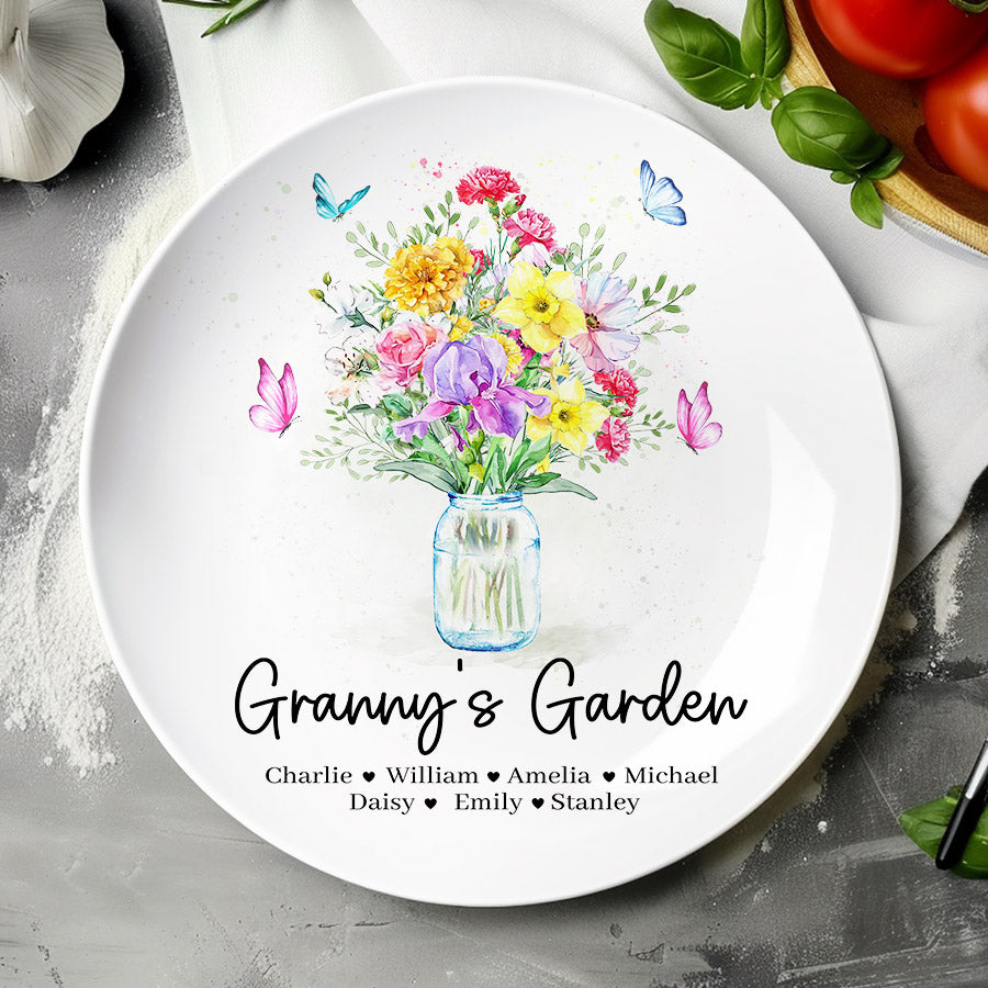 Personalized Gifts For Grandma From Grandkids | Personalized Mothers Day Presents | Grandmas Garden Plate | Birth Flower Gifts For Grandma