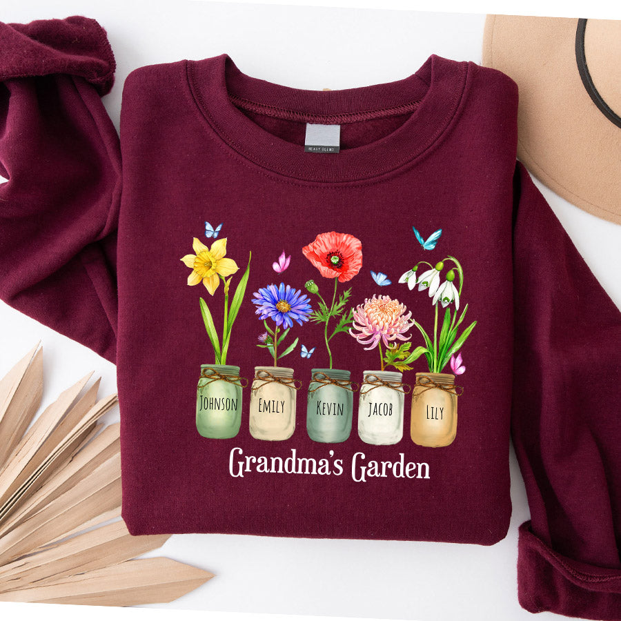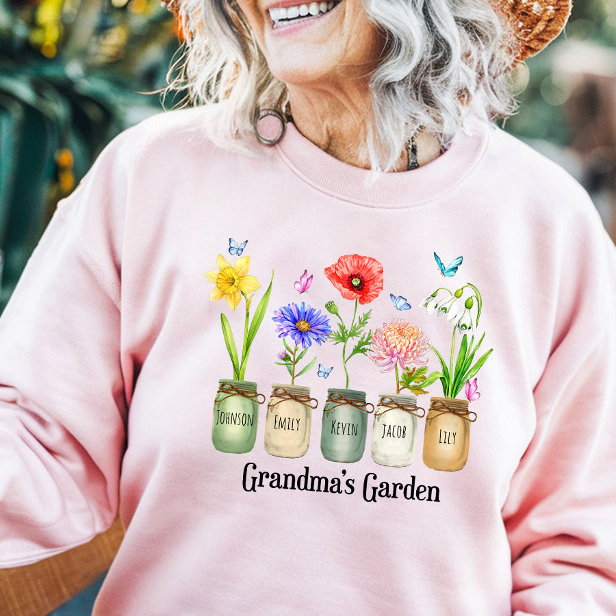 Grandmas Garden Gift | Personalized Mother'S Day Garden Gifts | Custom Grandma Sweatshirt | Grandmas Garden Gift With Birth Flower
