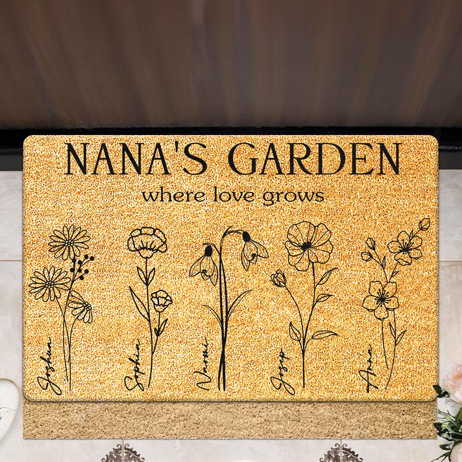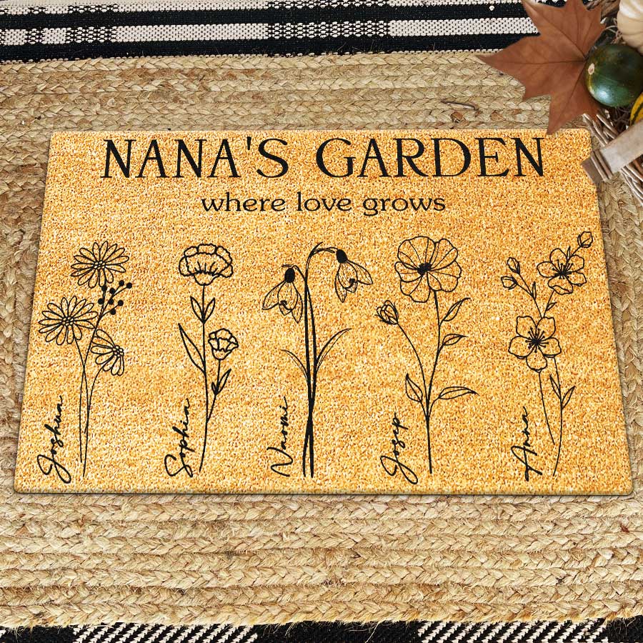 Bring joy to your grandmother's garden with the custom nana gifts | personalized grandma’s garden mothers day gift that shows your love and care. Grandmas do so much for their families, so this special doormat is a thoughtful way to show your appreciation for all she does. This extraordinary grandma garden gift is more than just a piece of art; it's a heartfelt tribute to the incredible woman who has made a lasting impact on your life.