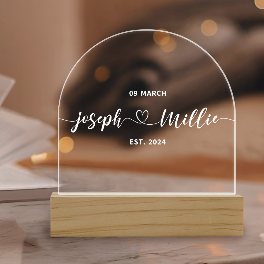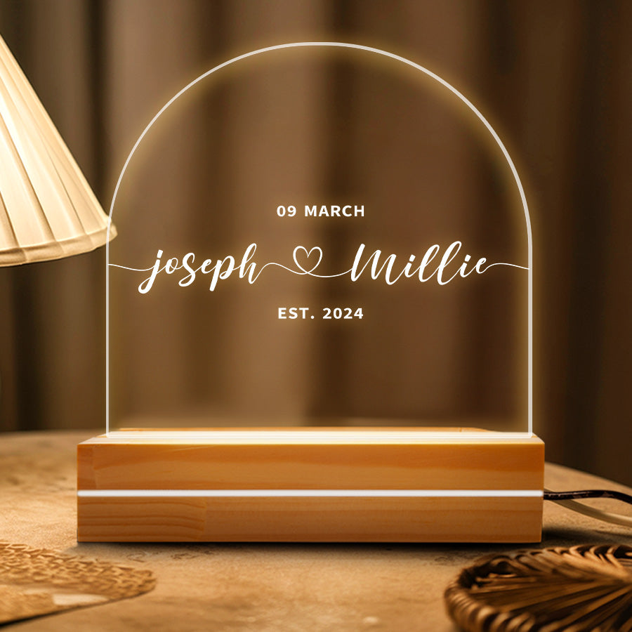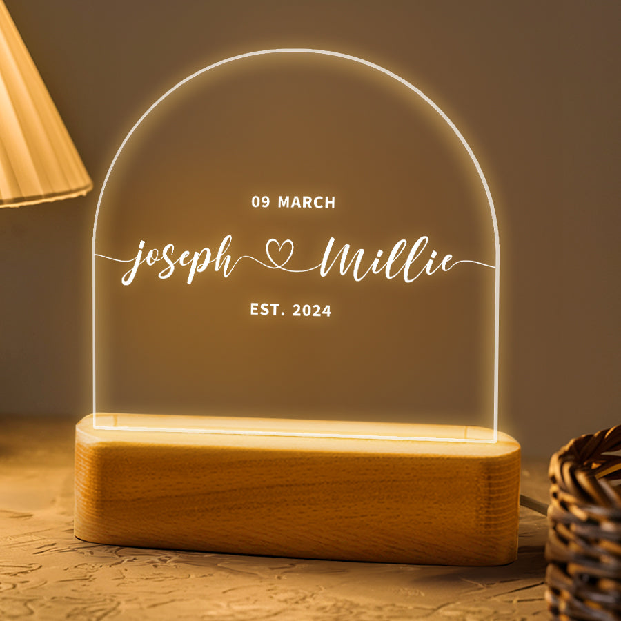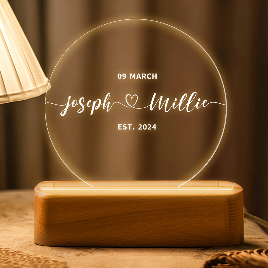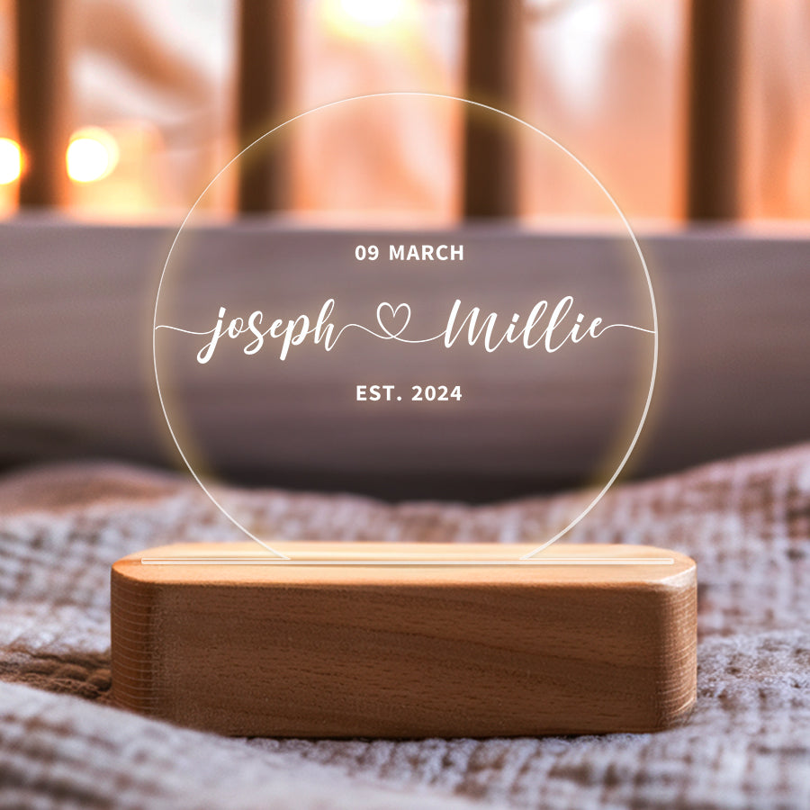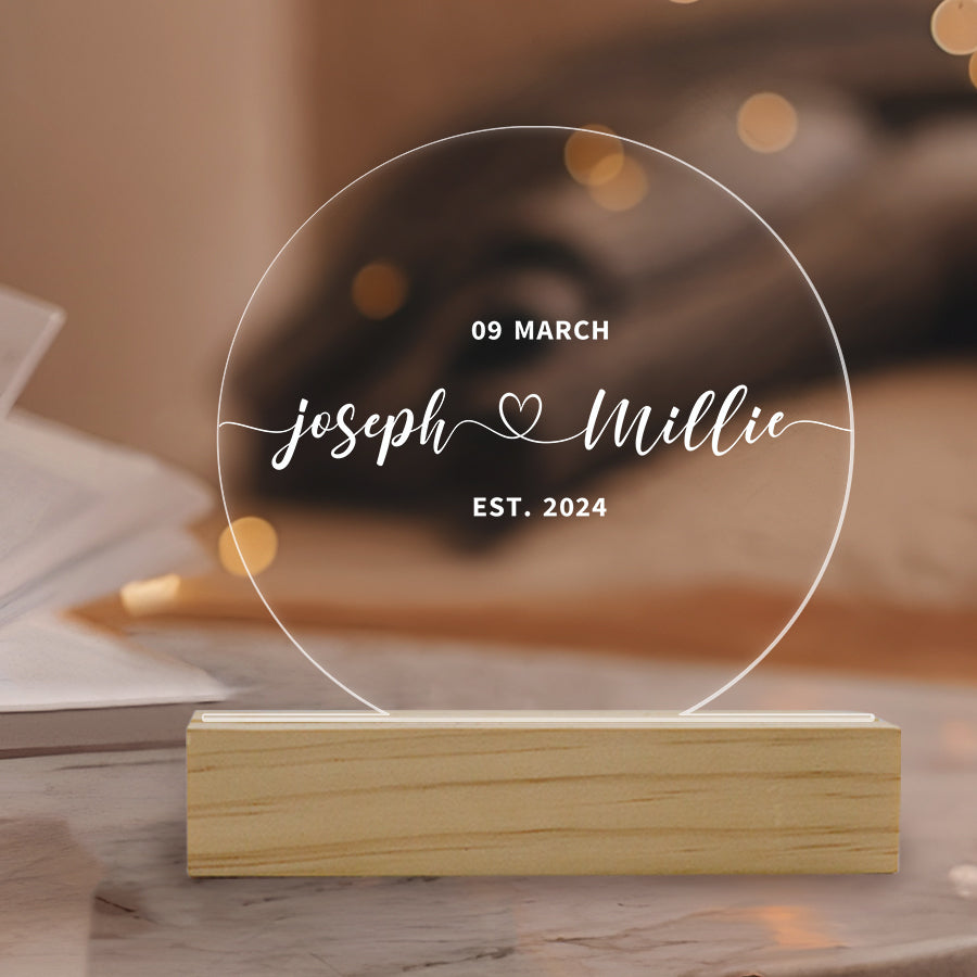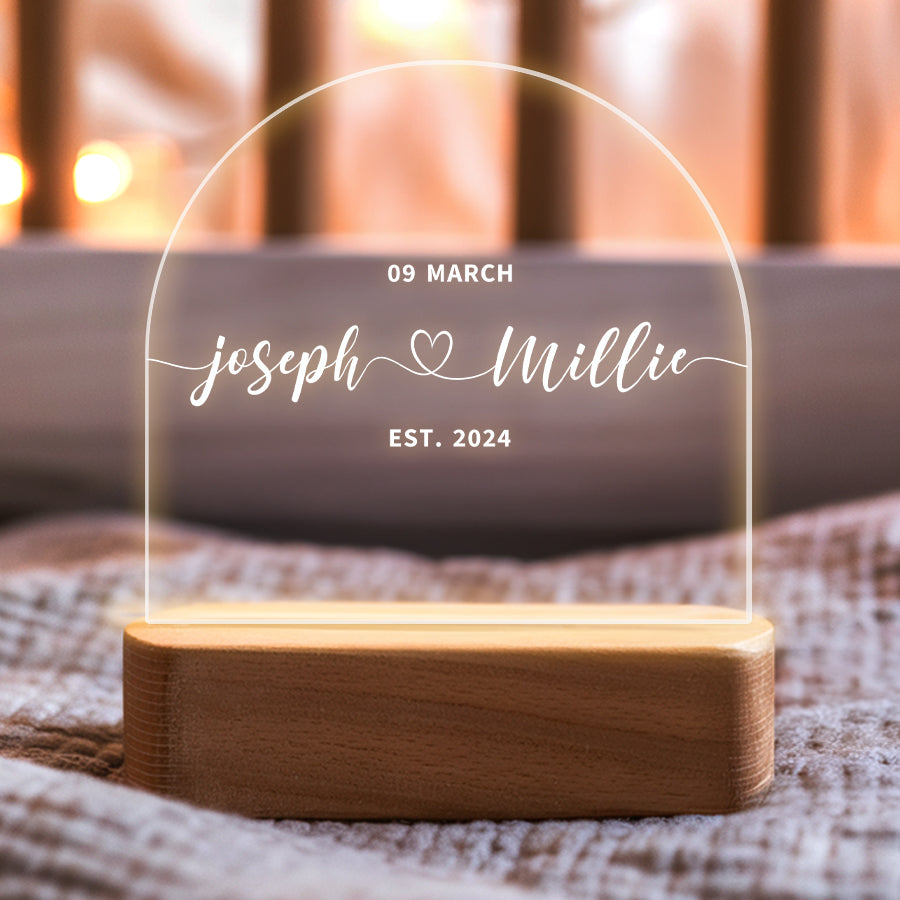 Mark the joyous occasion with perfect personalized night light for couples | wedding gift, like a beautifully wedding plaque. This personalized keepsake commemorates their love and commitment, making it a cherished memento of their special day.