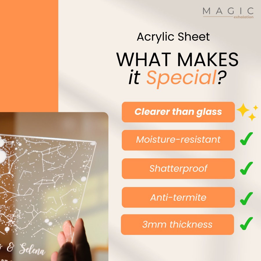 ⭐The set includes: An acrylic sheet and a pale yellow natural wood stand