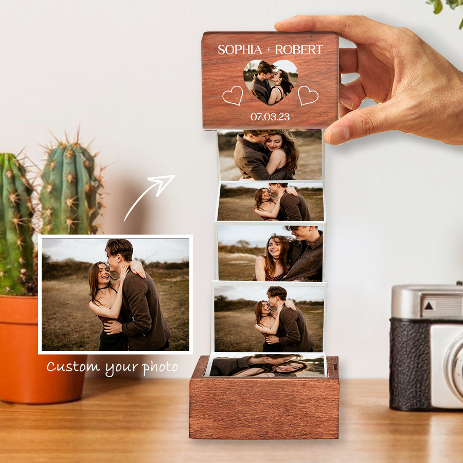 Customized Valentines Gifts For Him | Valentine’S Day Gifts Personalized | Wood Couple Photo Box Gift | Pull Out Photo Album