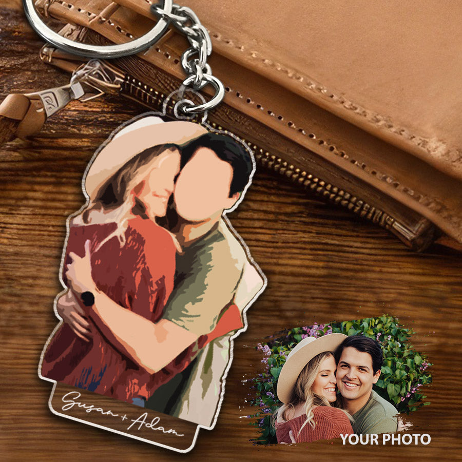 Valentines Custom Gifts | Personalized Gifts For Him For Valentine’S Day | Custom Shape Faceless Acrylic Couple Picture Keychain Gifts