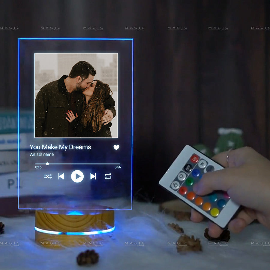 Custom Gifts for Valentines Day | Personalized Acrylic Plaques for Couples | Night Light Plaque with Wooden Sole