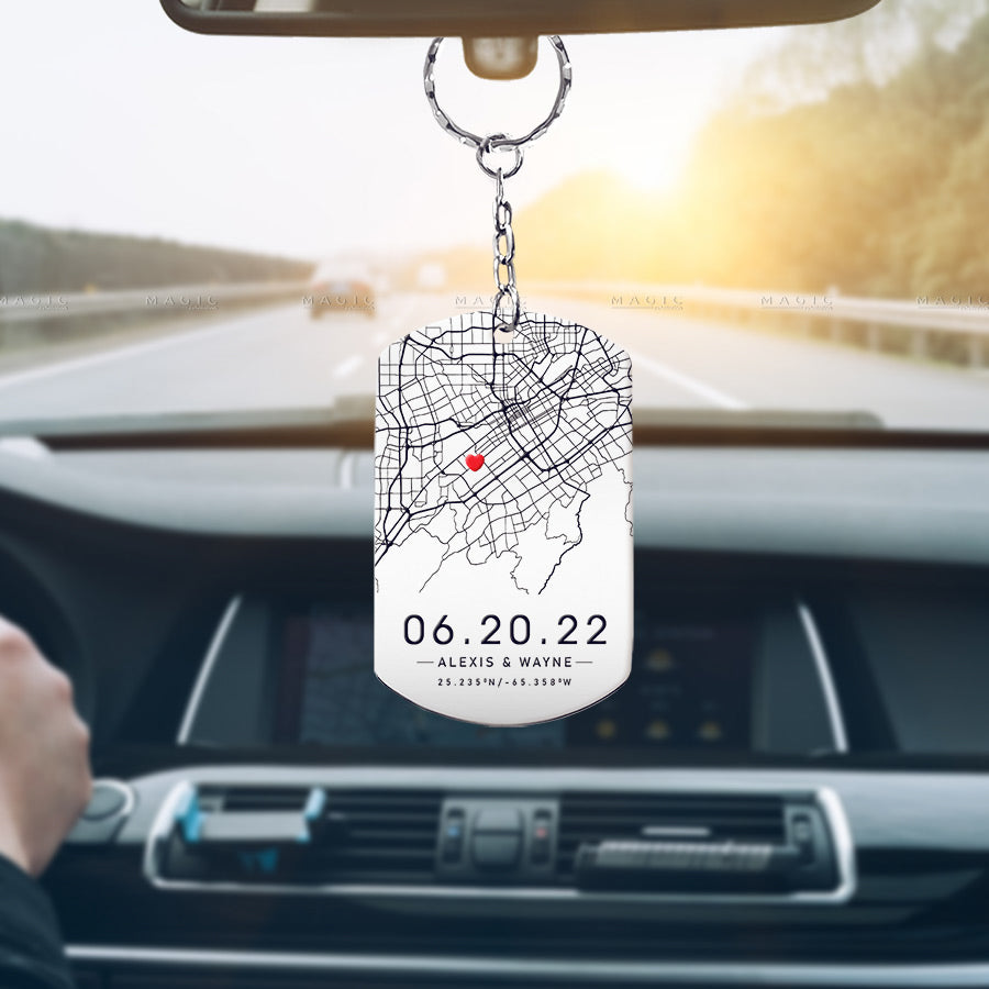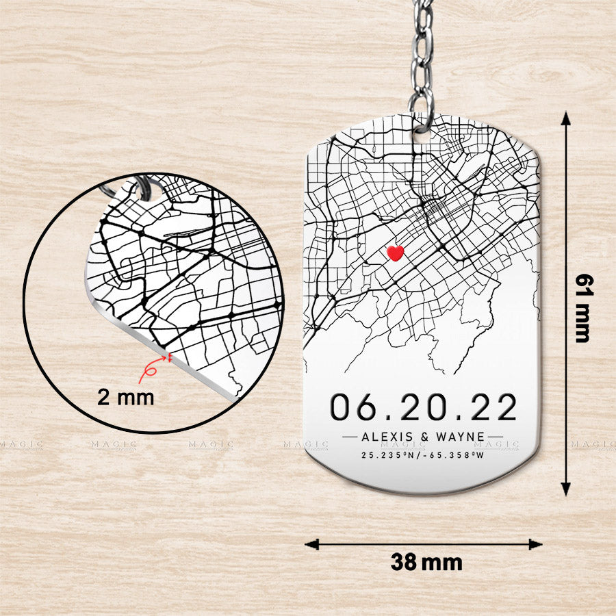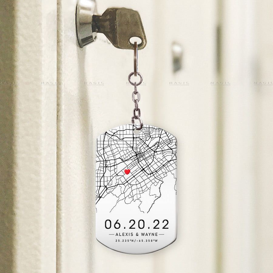 Personalized Valentines Gifts | Metal Keychains Custom City Map for Couple | Romantic Wedding Gift